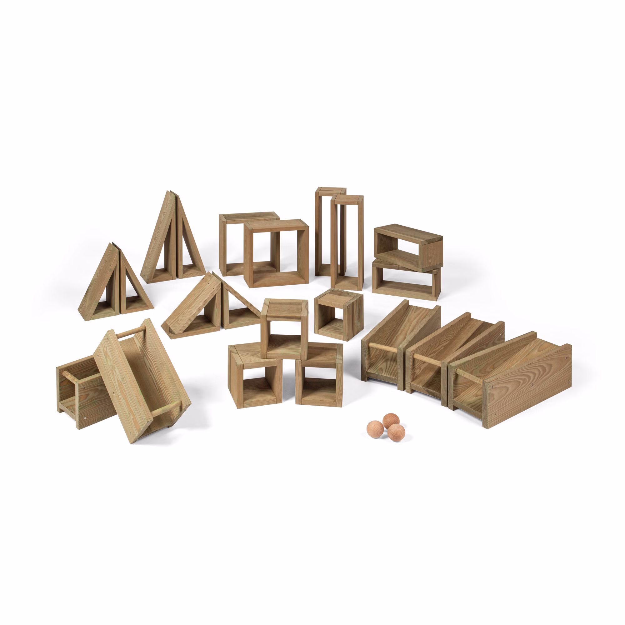 Die drei großen Holzmurmeln mit einem Durchmesser von 5 cm ergänzen das Set perfekt. Sie bieten zusätzlichen Spielspaß, und fördern das Verständnis für physikalische Gesetze, wie Schwerkraft und Dynamik.