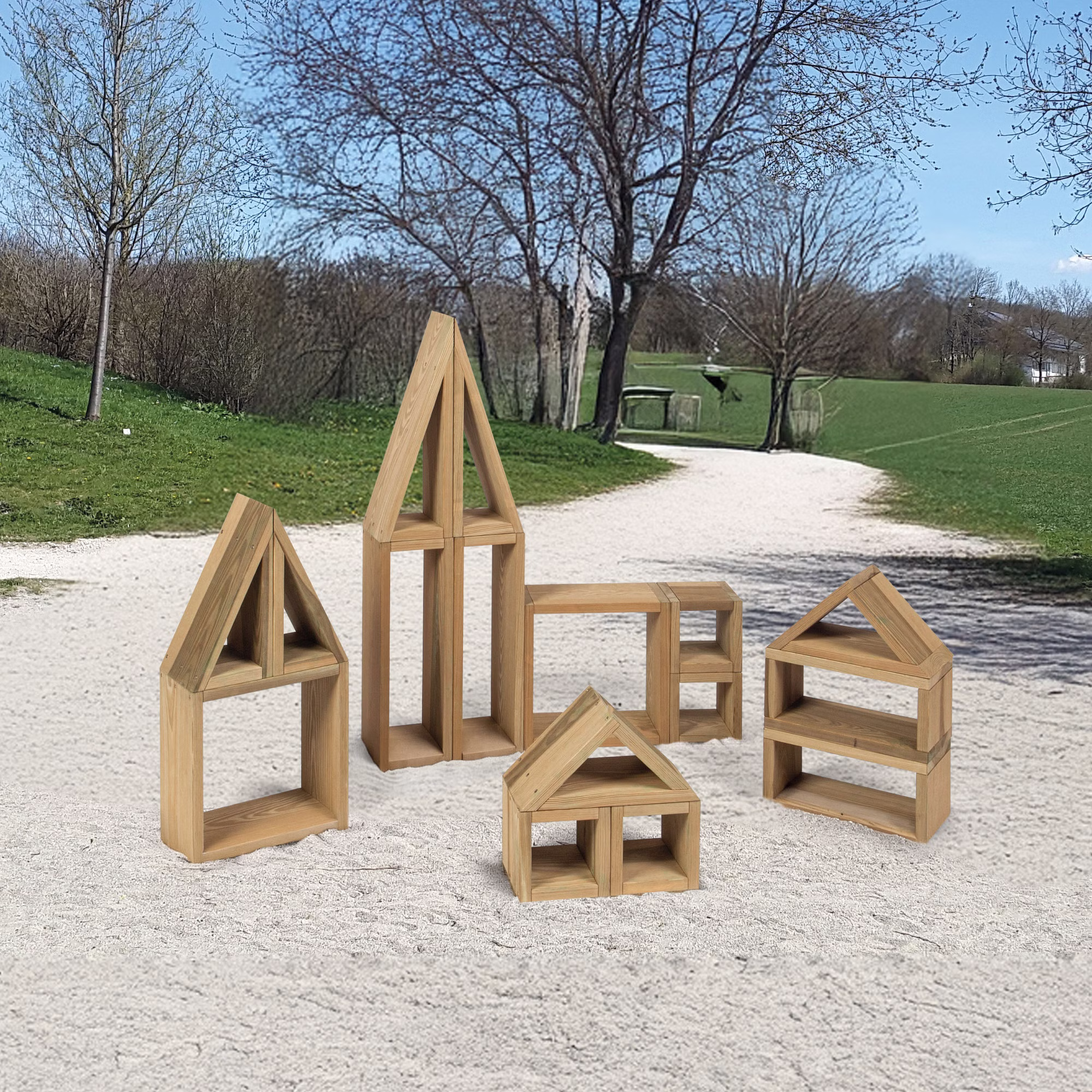 Mit unseren großen Outdoor Bausteinen aus wetterfestem Holz können Kinder ihrer Kreativität freien Lauf lassen und beeindruckende Bauwerke erschaffen.