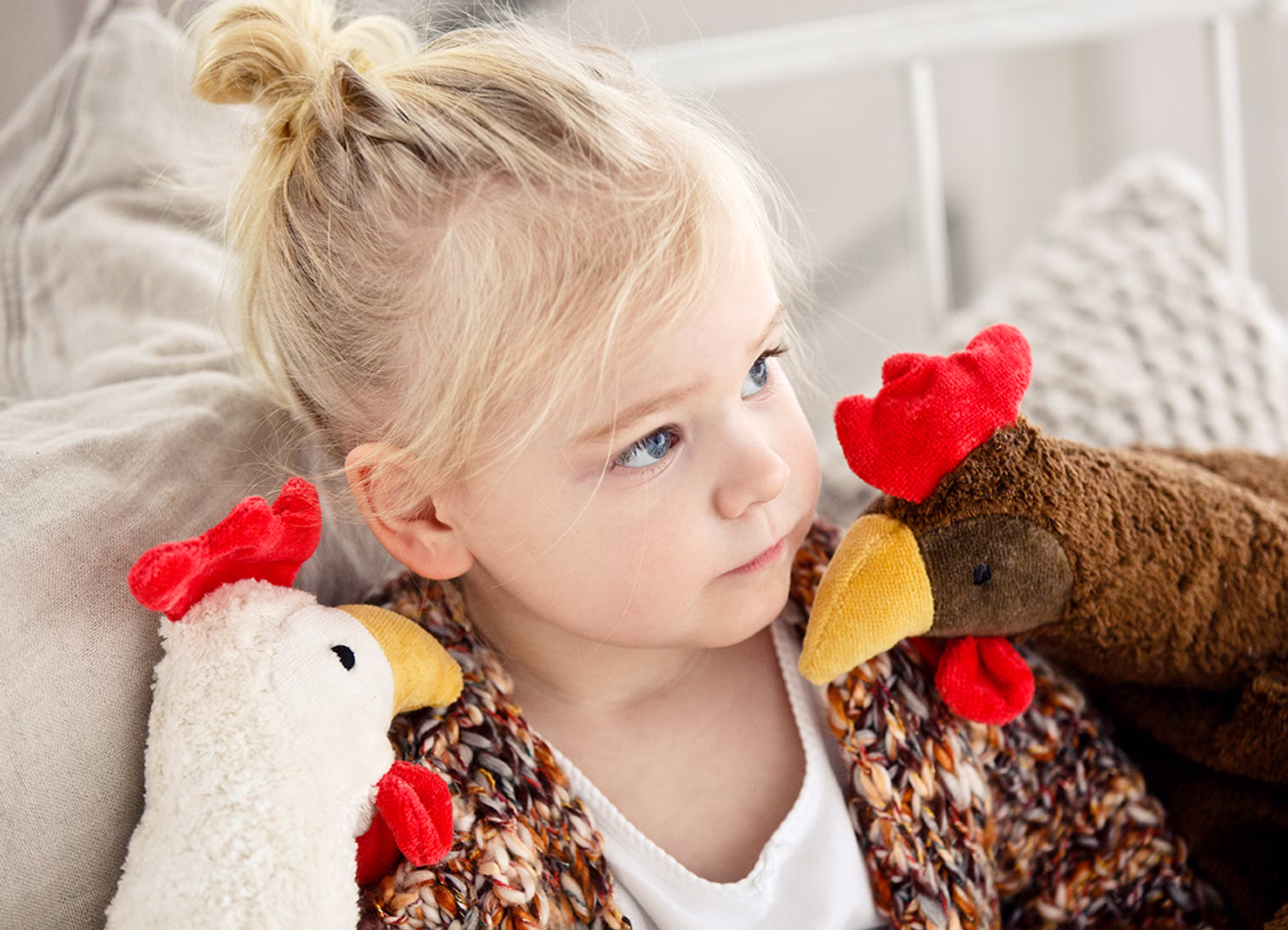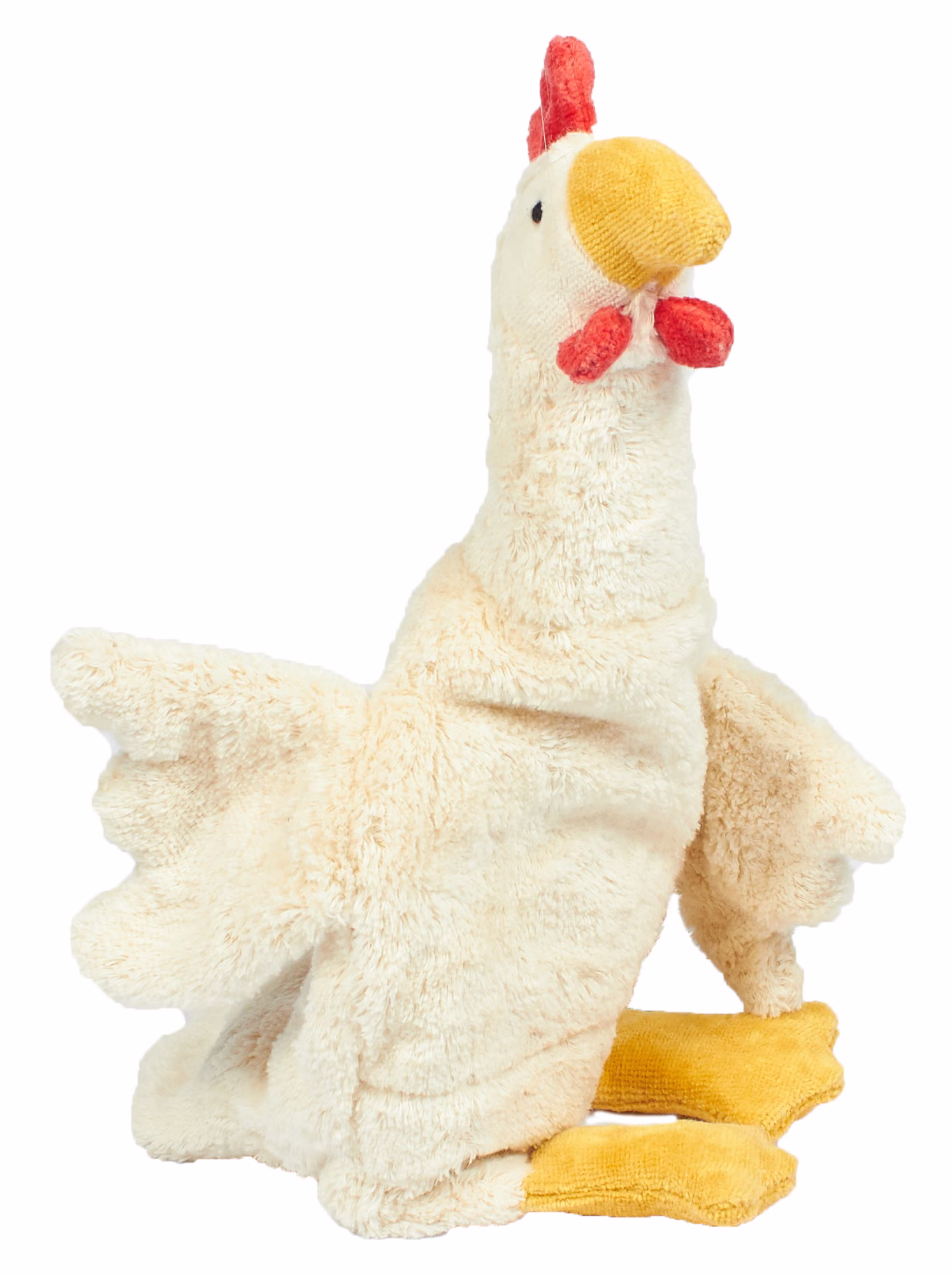 Dieses wundervolle Kuscheltier spendet Freude und Wärme zugleich. Die Hülle aus ökologischer Baumwolle macht das Huhn weich und anschmiegsam.