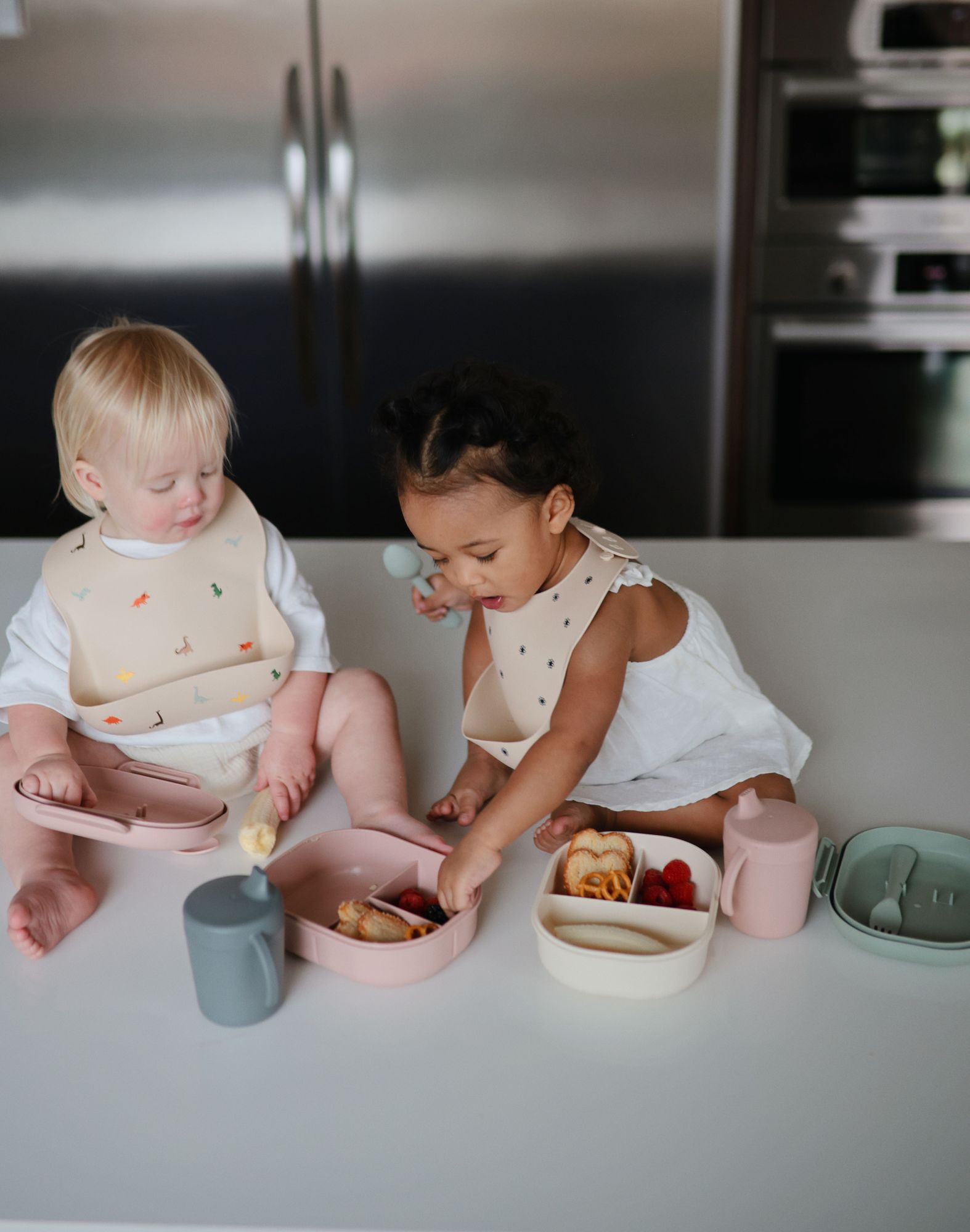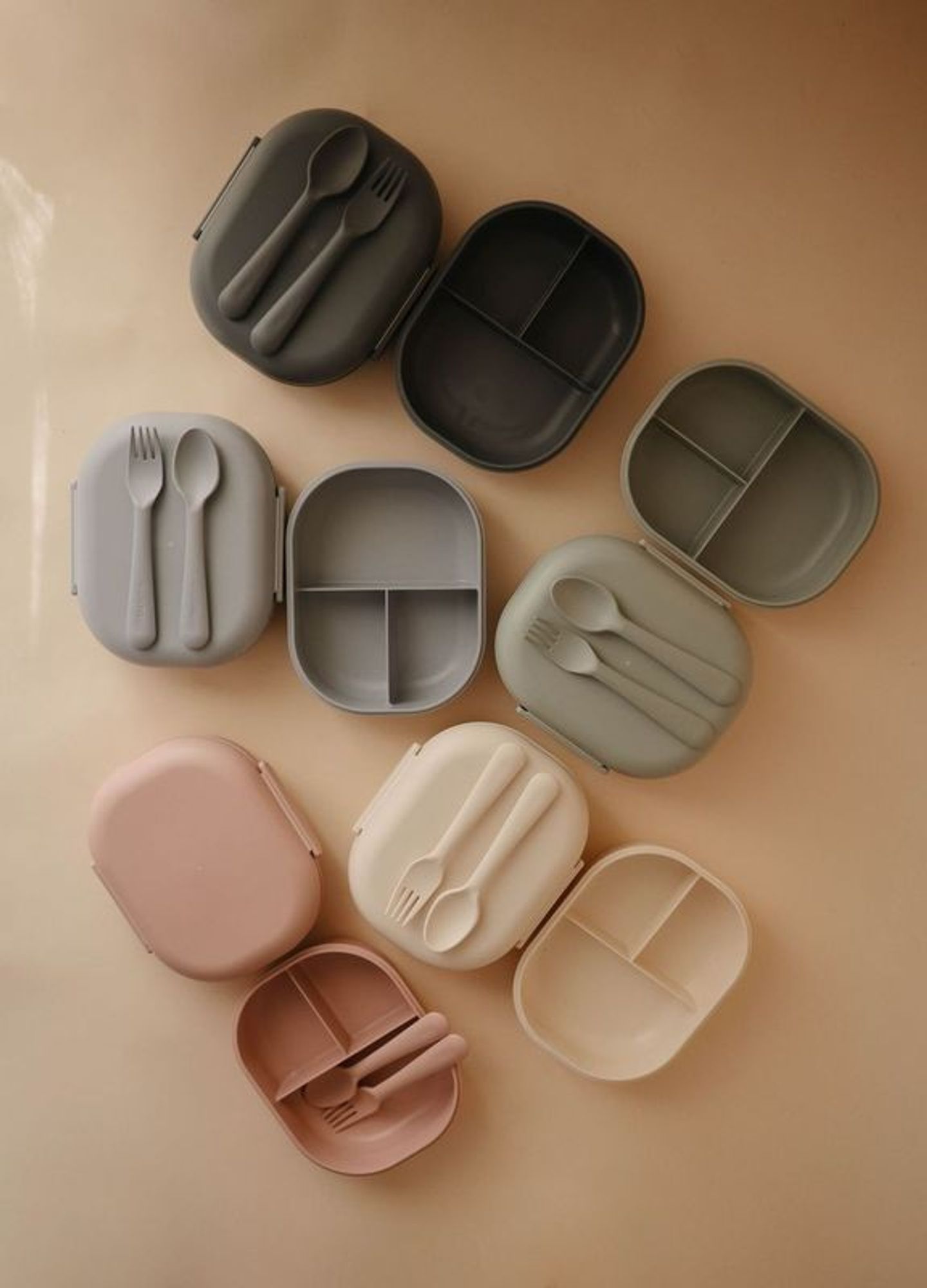 Dank der integrierten Fächer und des dicht schließenden Deckels können die Lebensmittel bis zum Essen getrennt und sicher aufbewahrt werden. Die mitgelieferten Utensilien können dank der herausnehmbaren Trennwand sicher aufbewahrt werden und bleiben sauber.