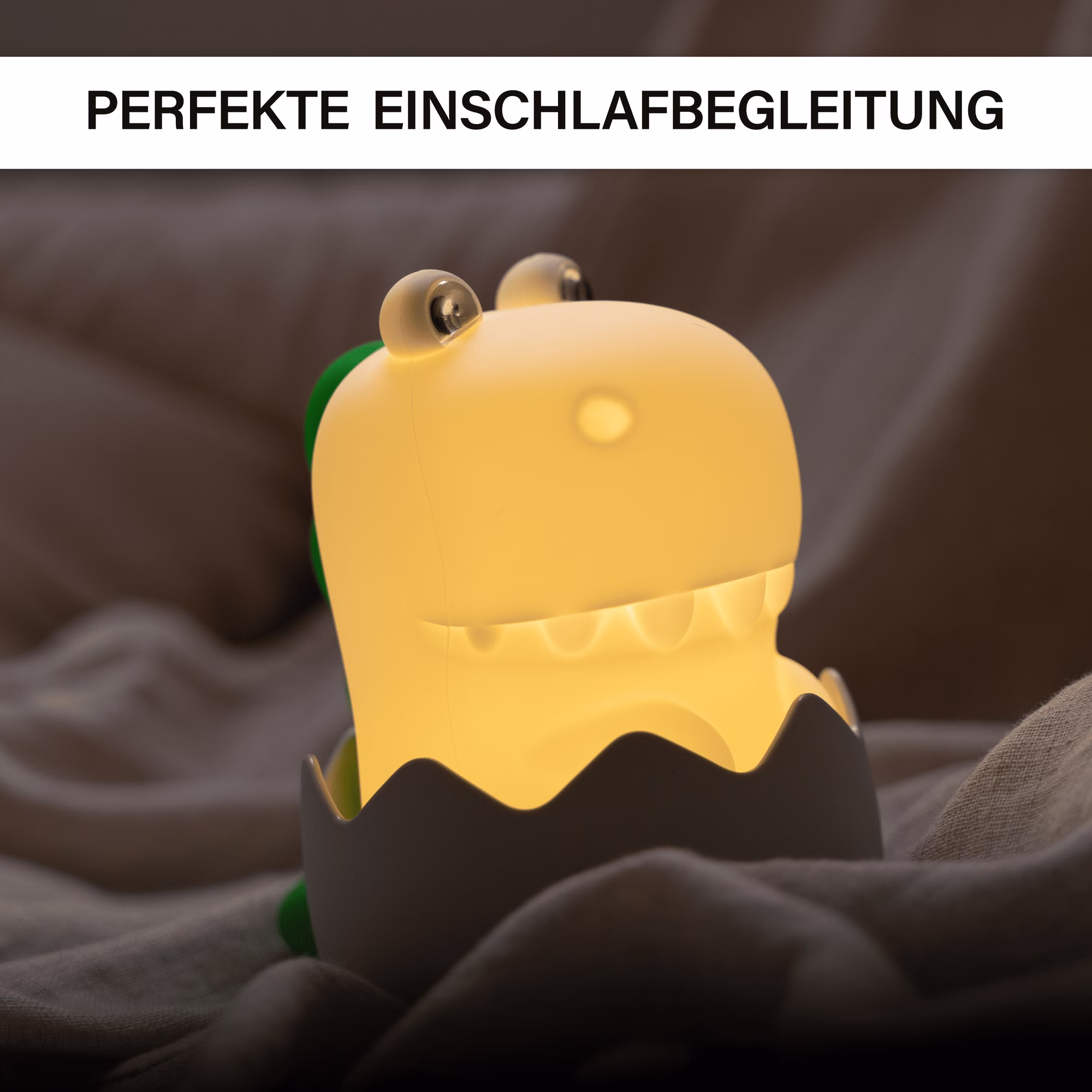 Das supersüße Nachtlicht "DIGGY DINO" vereint Funktionalität und niedliches Design, um das Kinderzimmer in eine entspannte Wohlfühloase zu verwandeln. Mit seinem fröhlichen Dino-Design und den vielseitigen Funktionen ist es sowohl ein Spielzeug als auch eine praktische Lichtquelle.