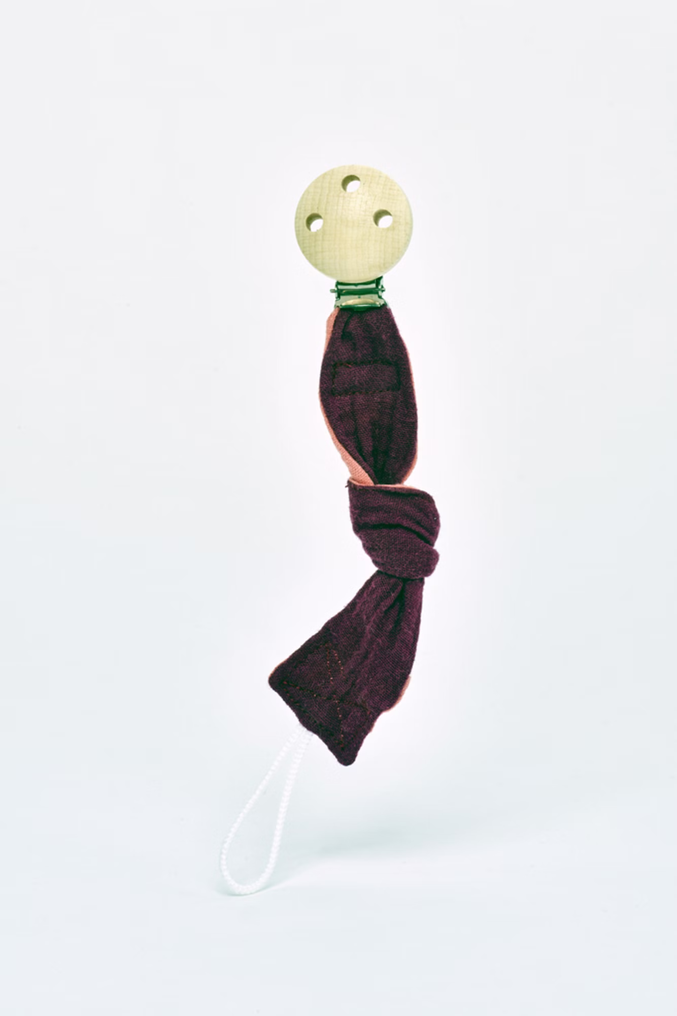 Die niedliche Schnullerkette aus weichem Baumwollmusselin ist mehr als nur ein praktischer Halter für den Schnuller. Der Stoff ist gedoppelt und einmal verknotet und lässt sich so von kleinen Händen besonders gut greifen. Mit dem praktischen Holzclip kann die Schnullerkette überall sicher befestigt werden – ideal für unterwegs, im Kinderwagen oder Zuhause. Ein liebevolles Accessoire, das Greifen, Spielen und Entdecken auf spielerische Weise unterstützt.