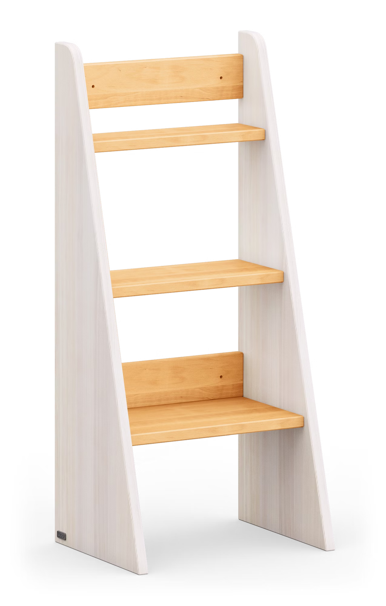 Mit Hilfe der praktischen Leiter zum Laura Wickeltisch steigen Wickelkinder später selbstständig auf den Wickeltisch. Das schont den Rücken der Erwachsenen und ist eine echte Hilfe im Alltag. Später ist die formschöne Leiter gut nutzbar als Regal und Ablagefläche.