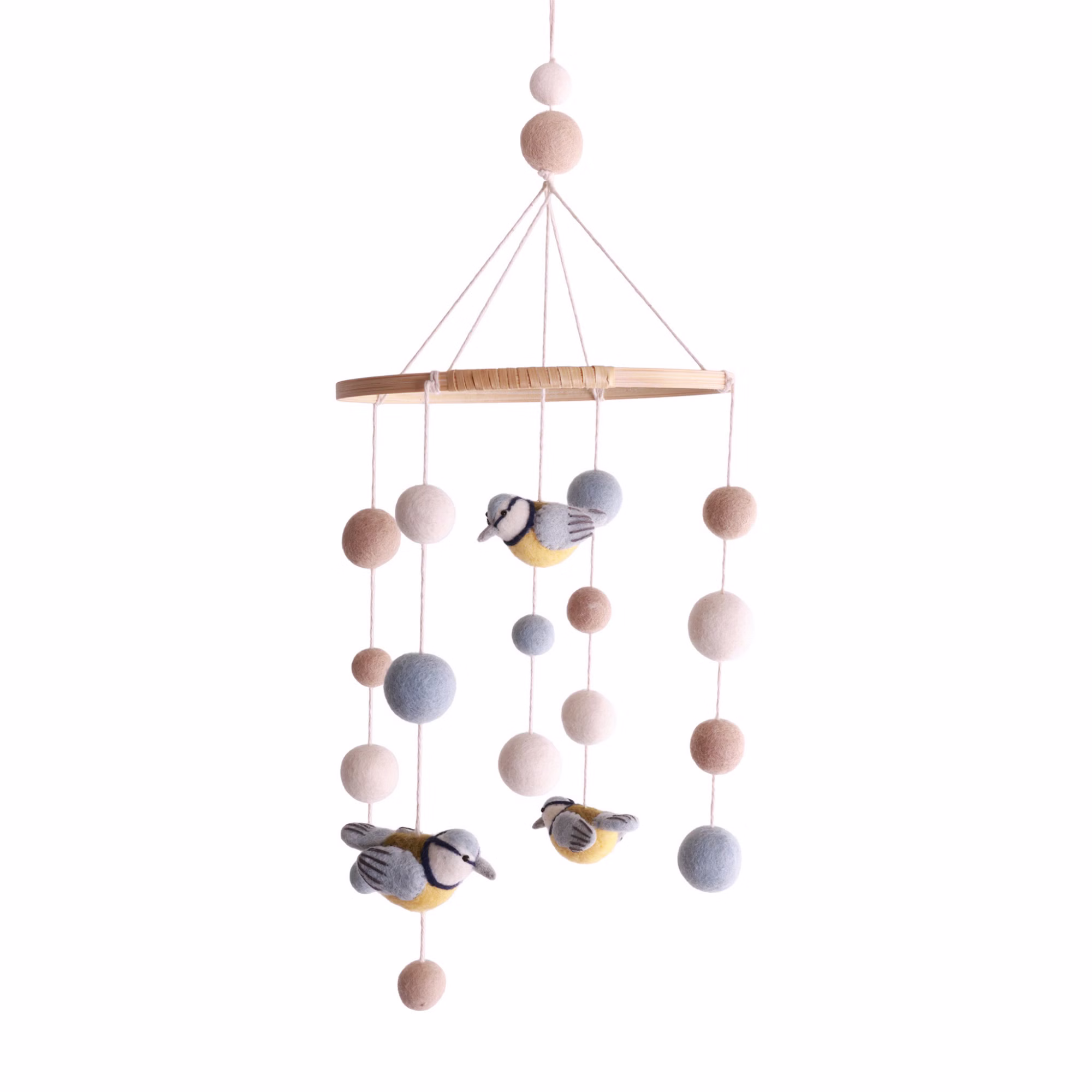 Einmal leicht in Bewegung gebracht, animiert das bezaubernde Filz-Mobile zum Strecken und Schauen.