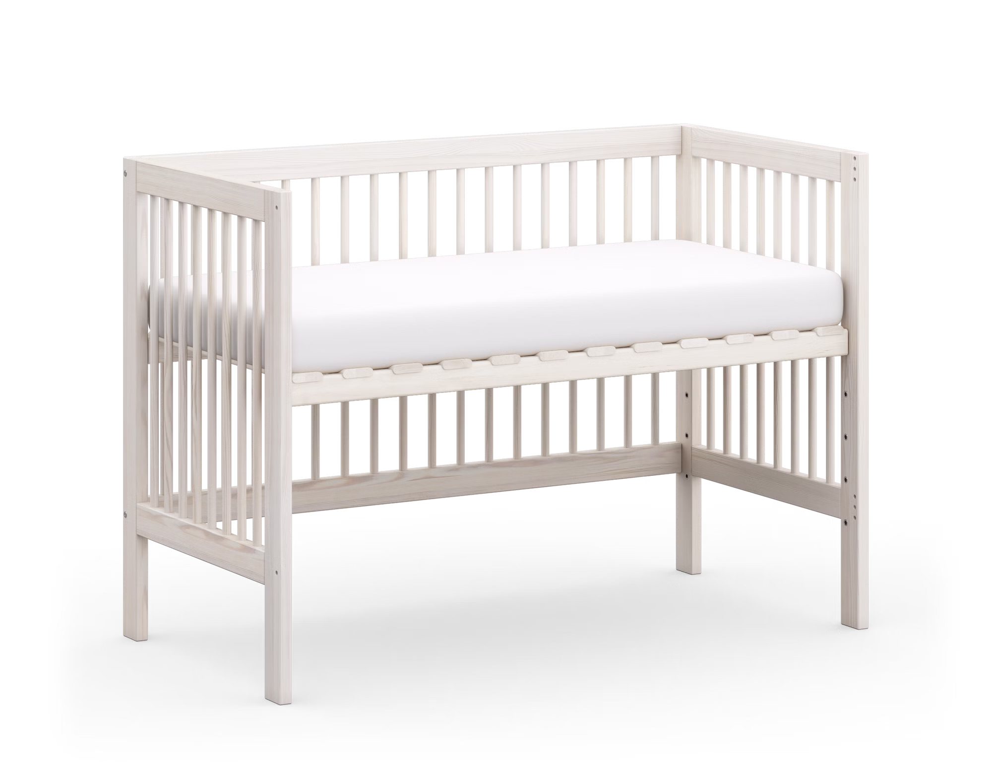 • Babybett Paula 60 x 120 cm: 5-fach höhenverstellbarer Lattenrost, 4 herausnehmbare Schlupfsprossen, umbaubar zum Beistellbett