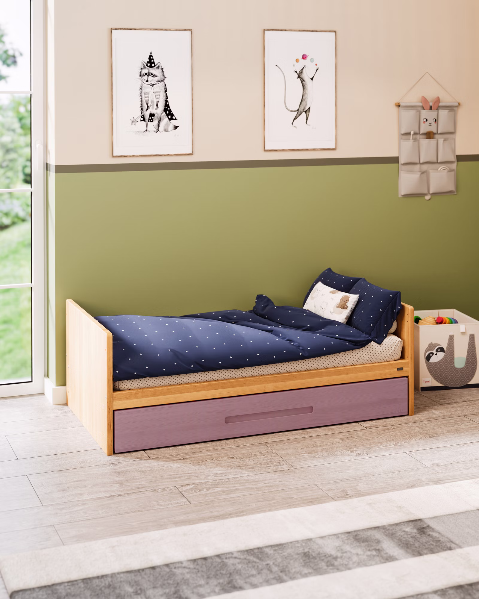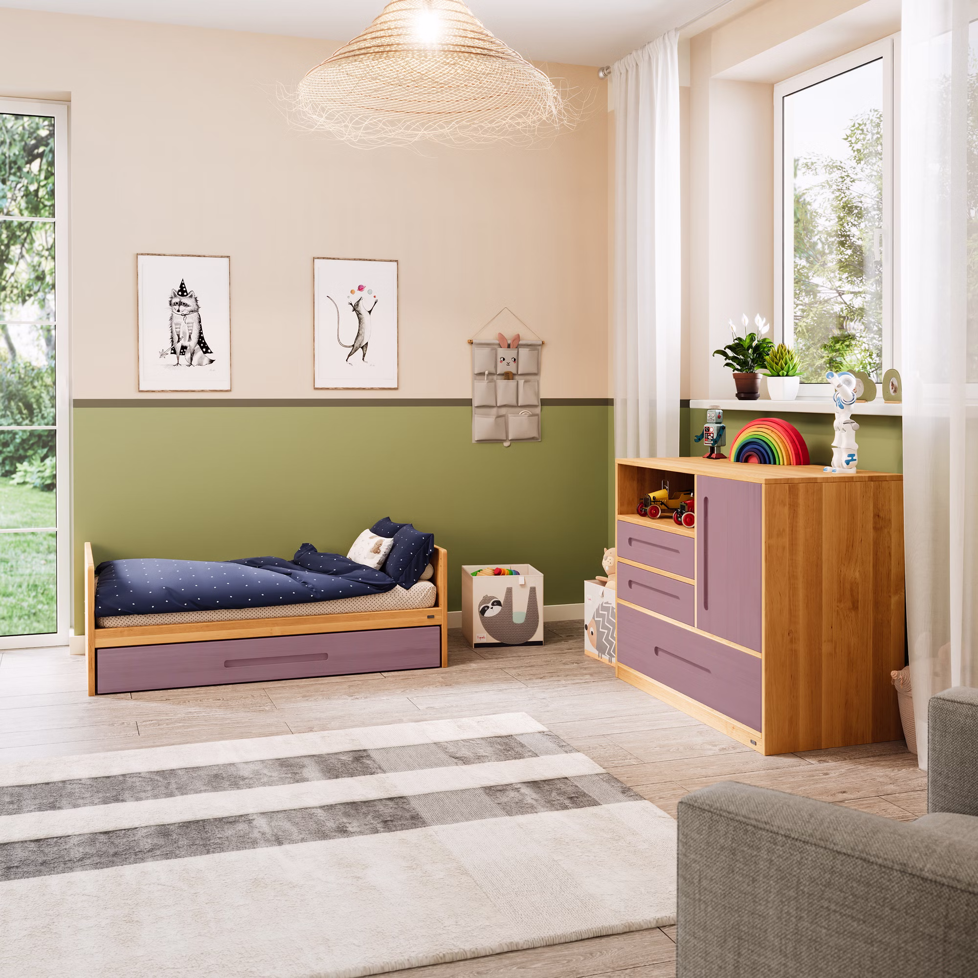 • Umbaumöglichkeit zum vollwertigen Kinderbett dank mitgelieferter Bettseiten. So wächst Lina als nachhaltiges Möbelstück lange mit.