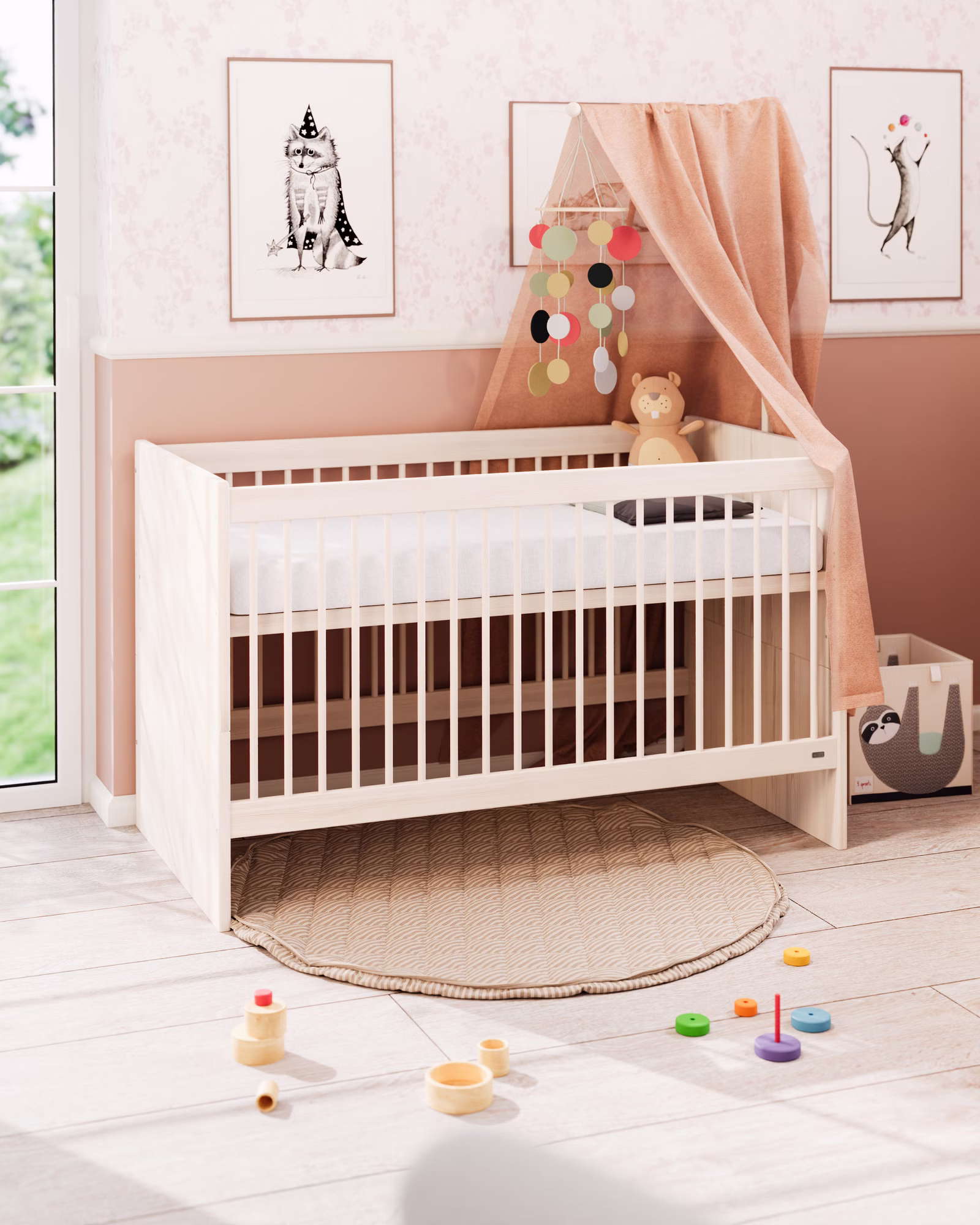 - Umbaumöglichkeit zum vollwertigen Kinderbett dank mitgelieferter Bettseiten. So wächst Lina als nachhaltiges Möbelstück lange mit.