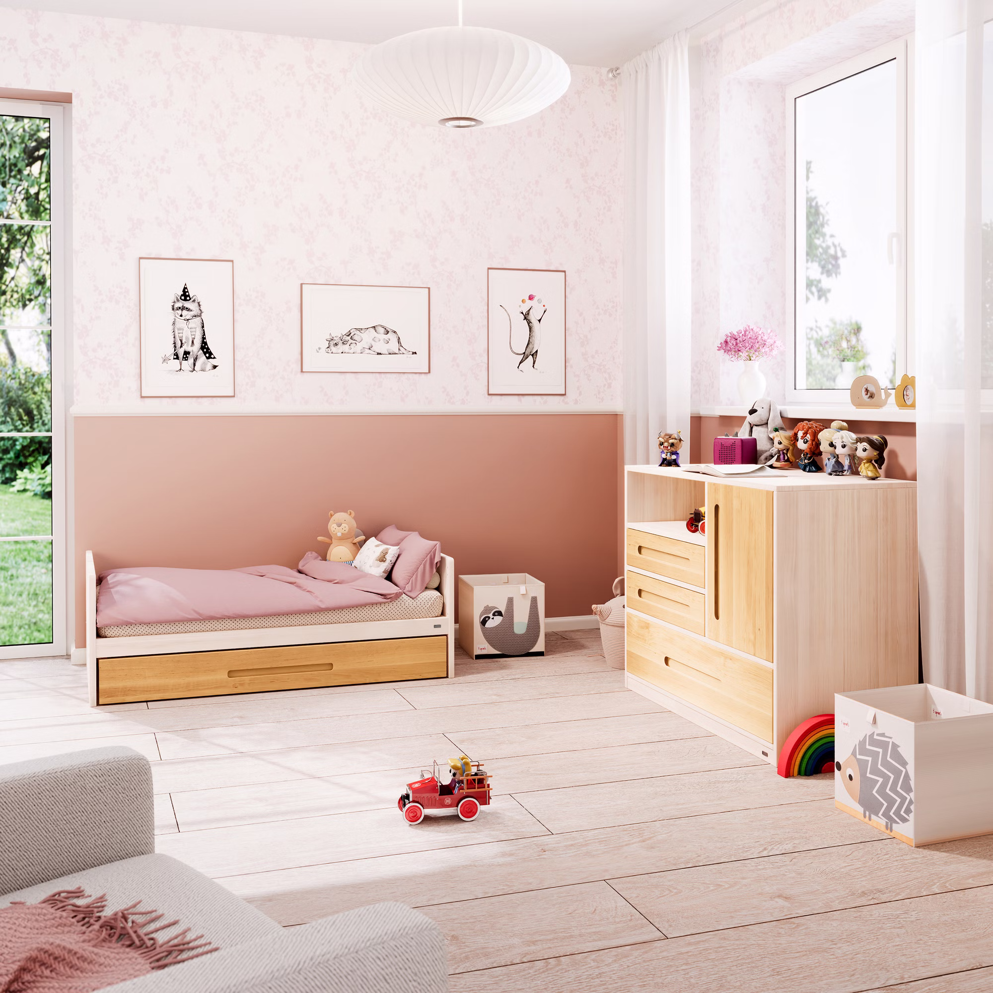- Umbaumöglichkeit zum vollwertigen Kinderbett dank mitgelieferter Bettseiten. So wächst Lina als nachhaltiges Möbelstück lange mit.