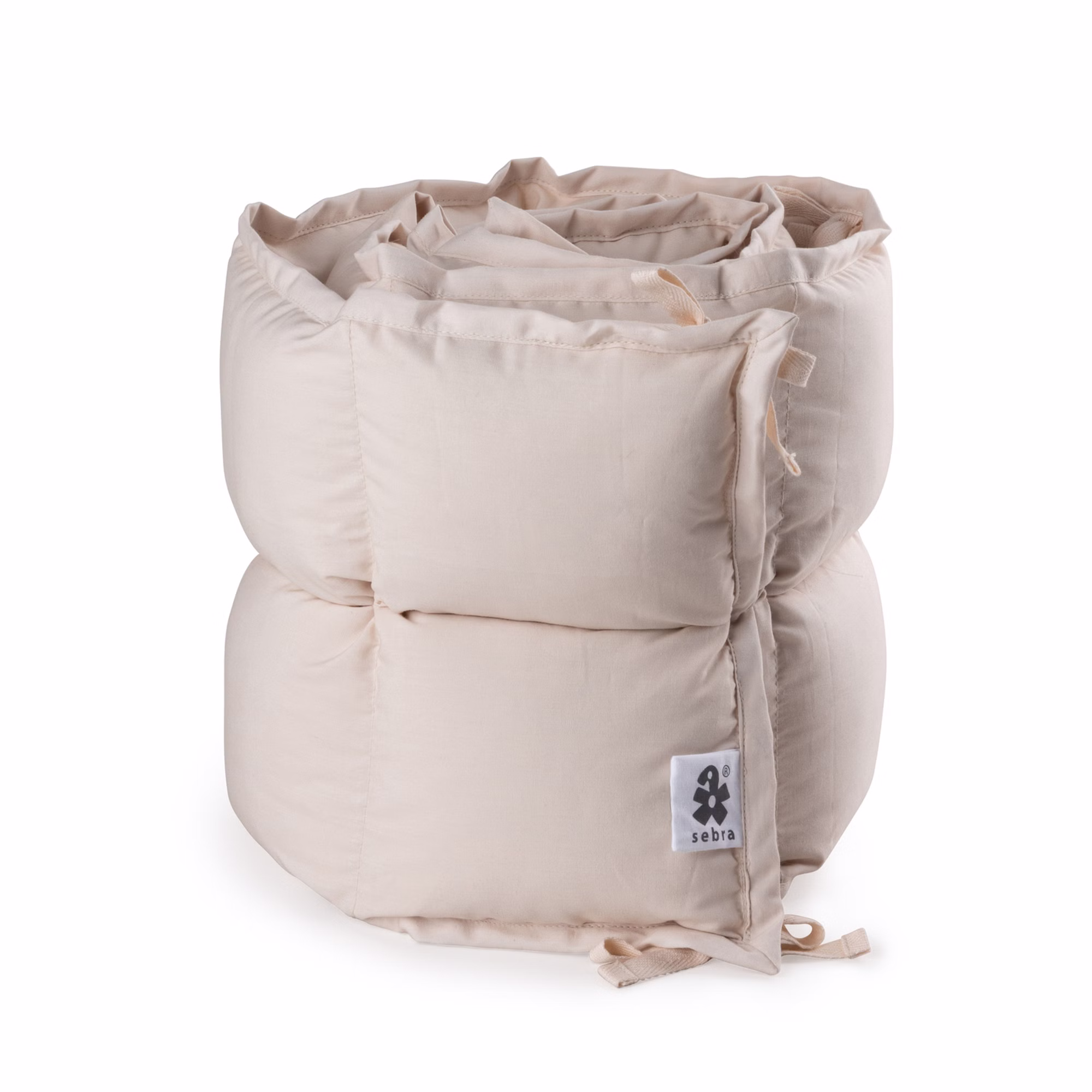Das Kapok-Bettnestchen hat eine Länge von 180 cm und lässt sich wahlweise am Kopfende oder an einer Bettseite entlang anbringen. Die feinen Bänder ermöglichen es Ihnen, das Nestchen sowohl oben als auch unten sicher am Gitterbett zu befestigen.