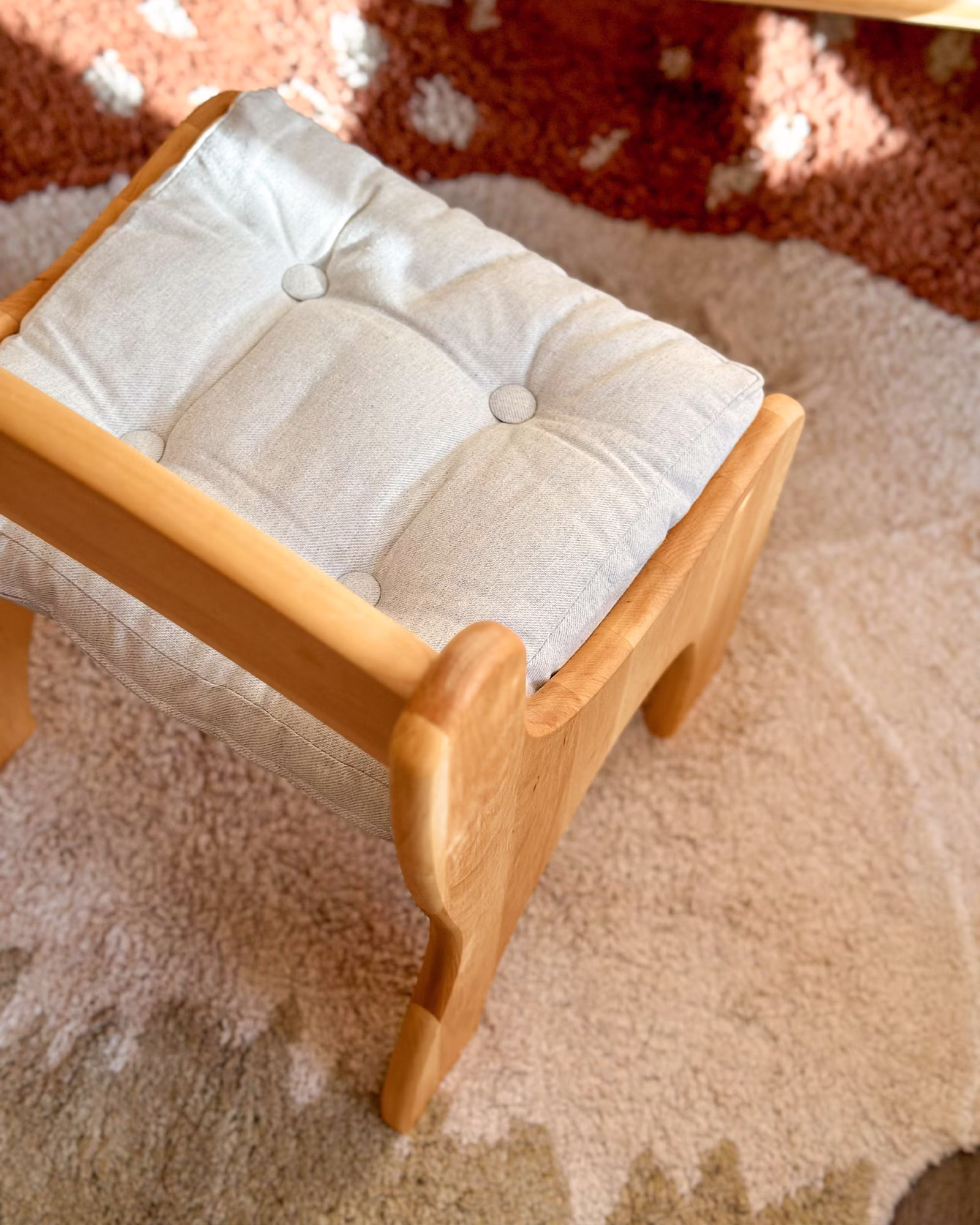 Maße: Kissen Kinderstuhl: 27,5 x 32 x 4 cm; Kissen Kinderbank: Dicke: 4 cm