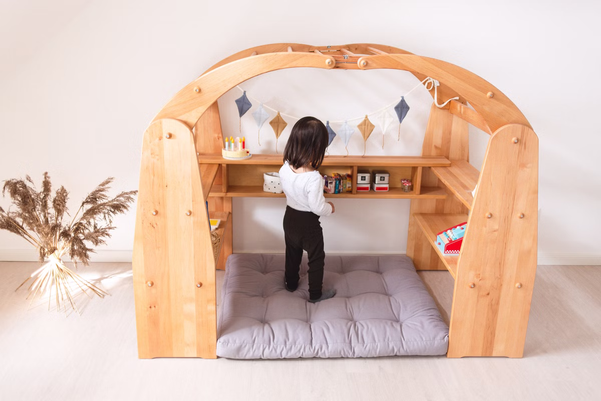 Auch im Wohnzimmer findet es als Bodenkissen in der Spielecke Verwendung und schafft überall einen gemütlichen Ort zum Spielen und Entspannen.