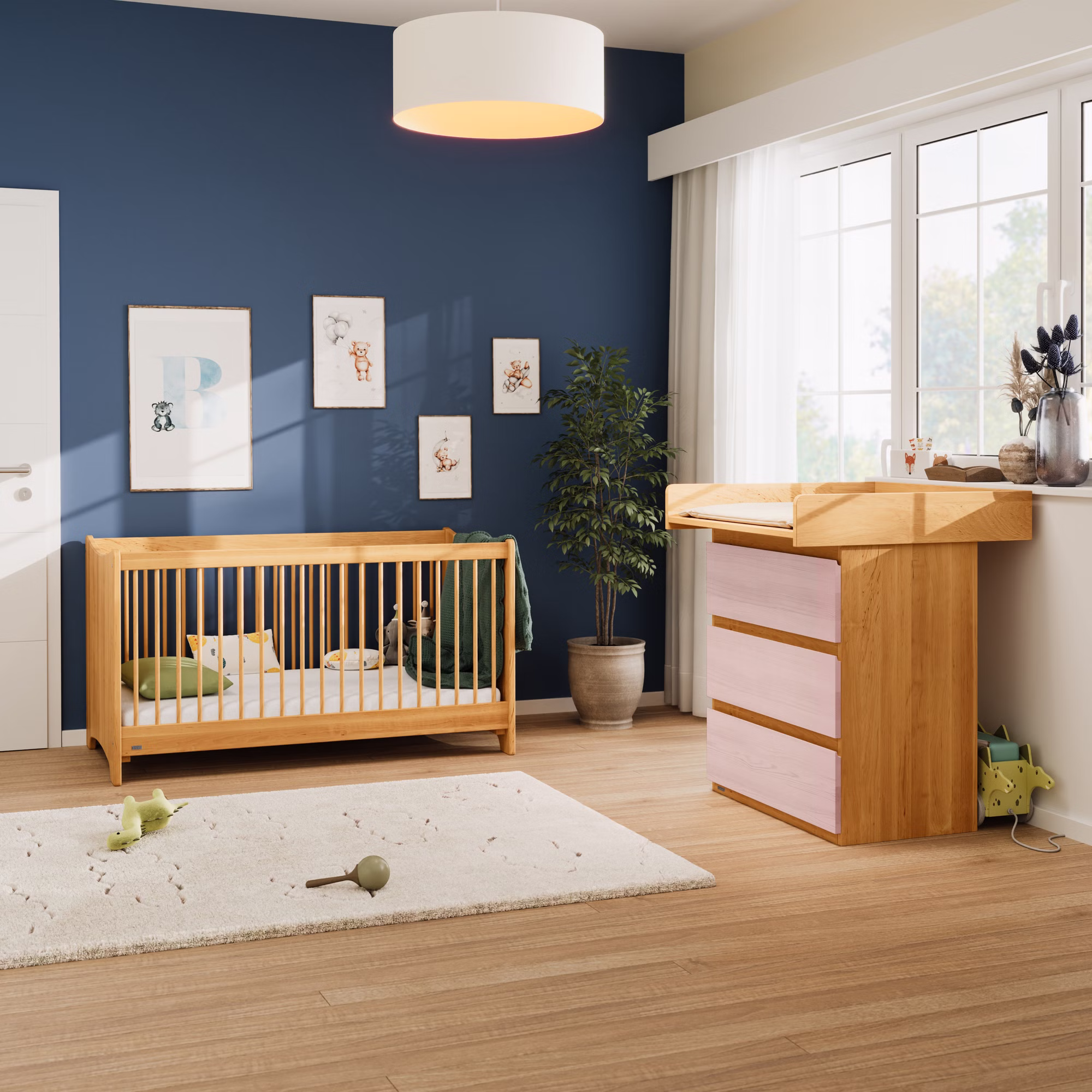 Mit unserer Wickelkommode Finn ist Staufläche kein Problem mehr. Egal ob im Schlafzimmer, Babyzimmer oder auch im Wohnzimmer, unserer Kommode aus Massivholz macht in jedem Zimmer eine gute Figur. Das geradlinige Design der Kommode fügt sich problemlos in jede Zimmereinrichtung und besticht durch die schöne Maserung des Holzes auf den breiten Fronten.
