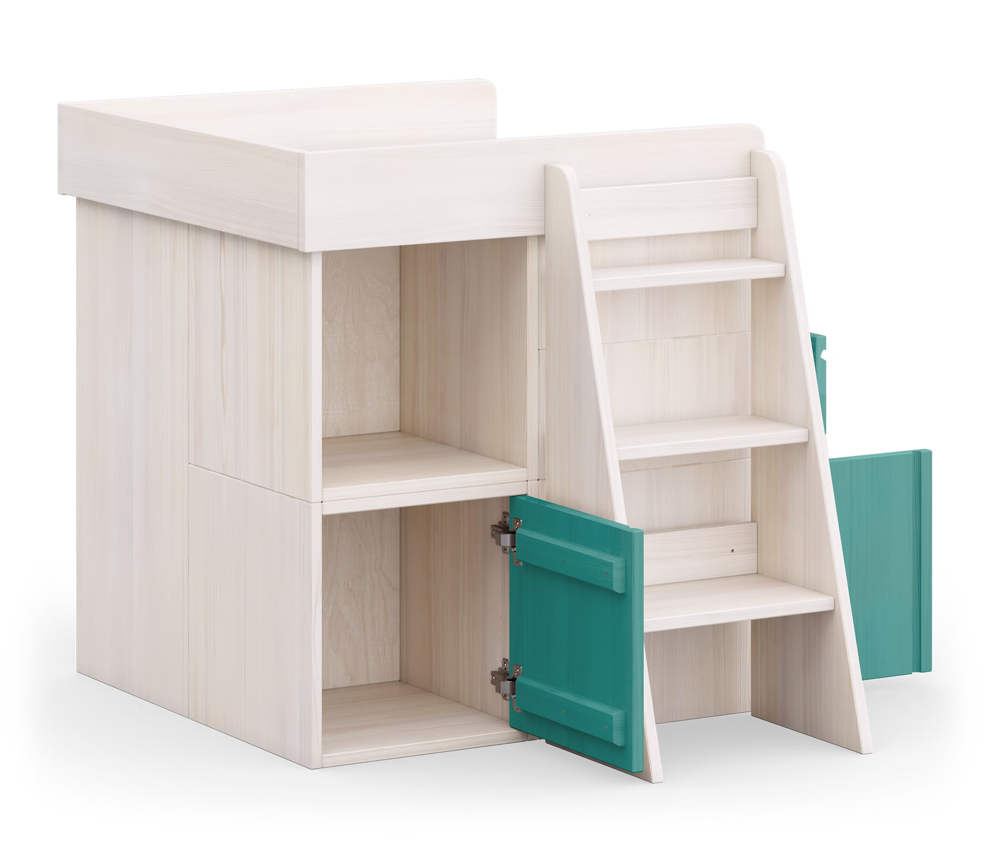 Unser Laura wandelbarer Wickeltisch wird aus Bio-Massivholz gefertigt und ergänzt jedes Zimmer ideal. Die offenen und geschlossenen Laura Regalwürfel lassen sich vielfältig und flexibel miteinander kombinieren und ergeben so individuell gestaltete Regale, Kommoden und Raumteiler, die auch ideal in Dachschrägen passen.