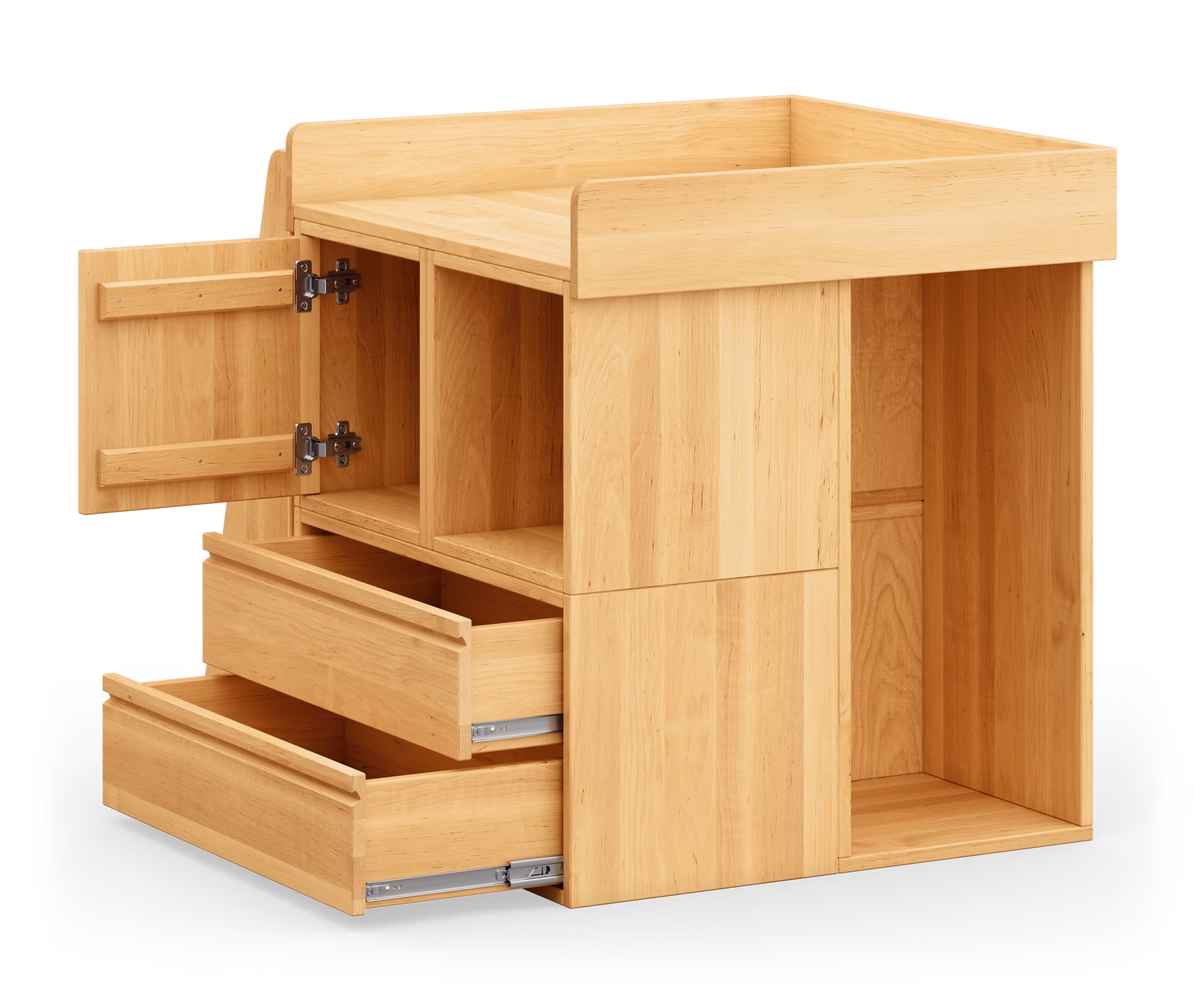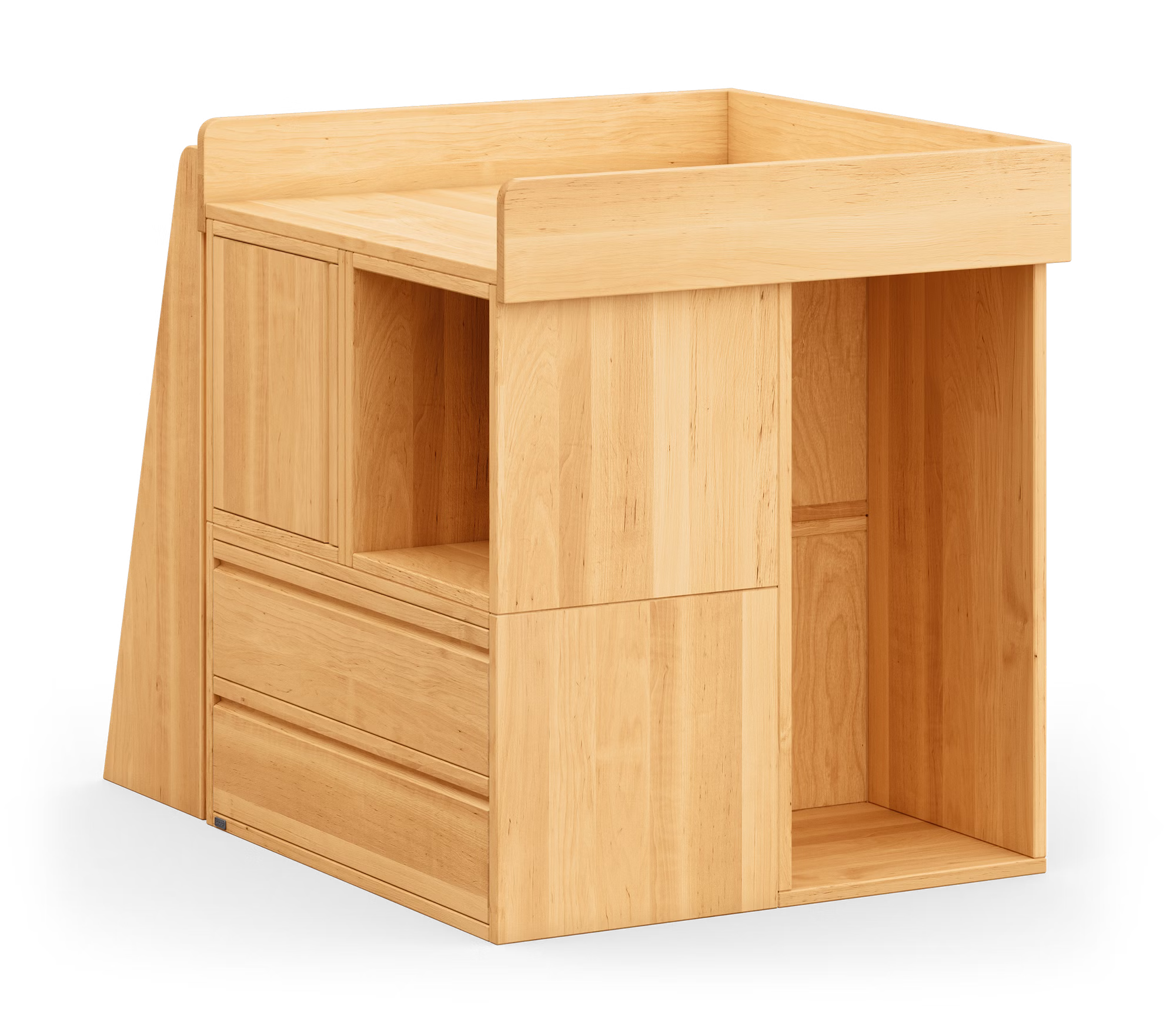 Unser Laura wandelbarer Wickeltisch wird aus Bio-Massivholz gefertigt und ergänzt jedes Zimmer ideal. Die einzelnen Laura Regalwürfel lassen sich vielfältig und flexibel miteinander kombinieren und ergeben so individuell gestaltete Regale, Kommoden und Raumteiler, die auch ideal in Dachschrägen passen.