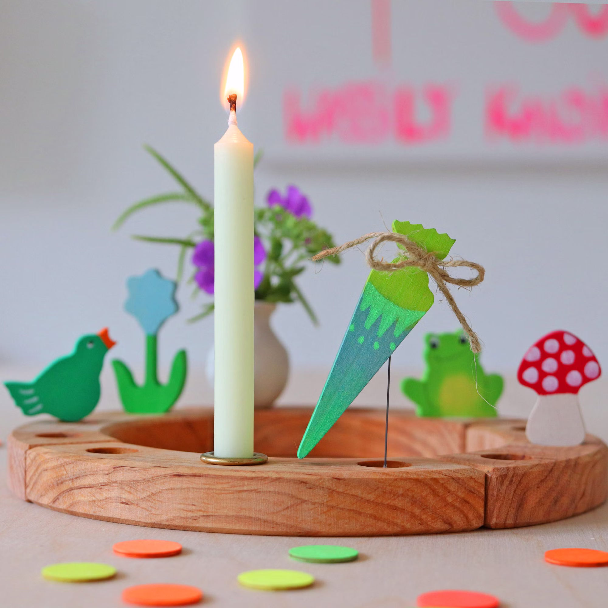 Passend zu allen Geburtstagsringen und Geburtstagsspiralen von Grimm's und BioKinder.