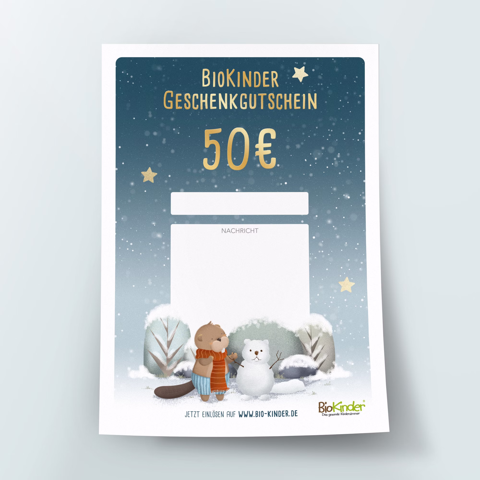 Schenken Sie Freude! Mit einem BioKinder Geschenkgutschein steht das ganze BioKinder-Sortiment zur Verfügung. Der gewählte Betrag kann gleich oder nach und nach eingelöst werden. Das Restguthaben steht selbstverständlich weiterhin zur Verfügung. Das ideale Geschenk im Freundes- und Kollegenkreis.