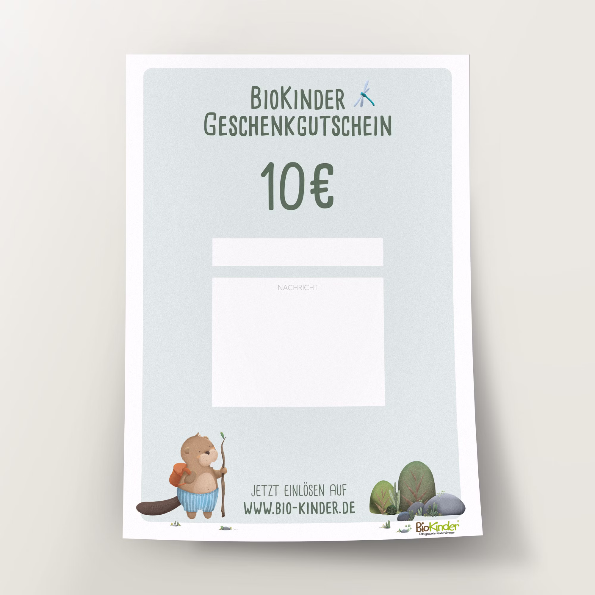 Schenken Sie Freude! Mit einem BioKinder Geschenkgutschein steht das ganze BioKinder-Sortiment zur Verfügung. Der gewählte Betrag kann gleich oder nach und nach eingelöst werden. Das Restguthaben steht selbstverständlich weiterhin zur Verfügung. Das ideale Geschenk im Freundes- und Kollegenkreis.