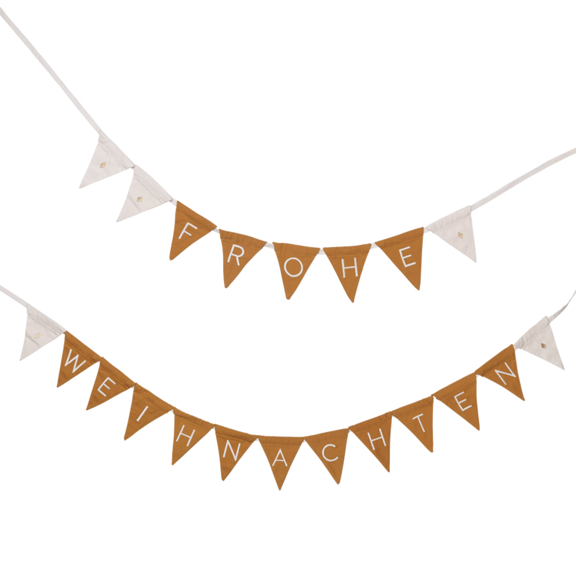 Dekorieren Sie das Haus mit der Weihnachtsgirlande von Fabelab mit den Worten „FROHE WEIHNACHTEN“.