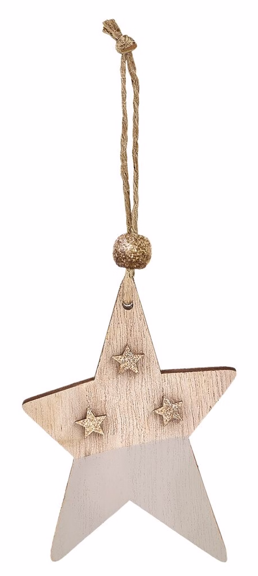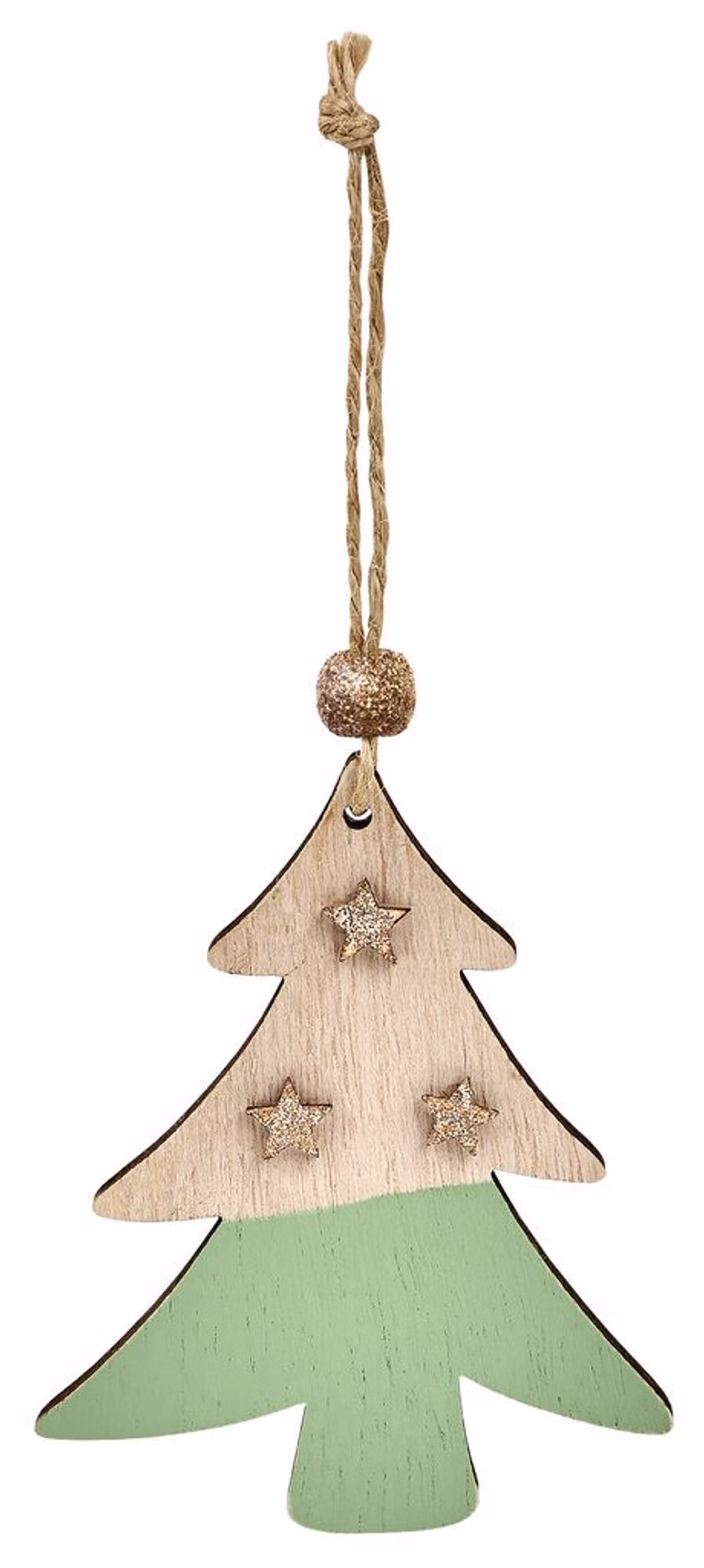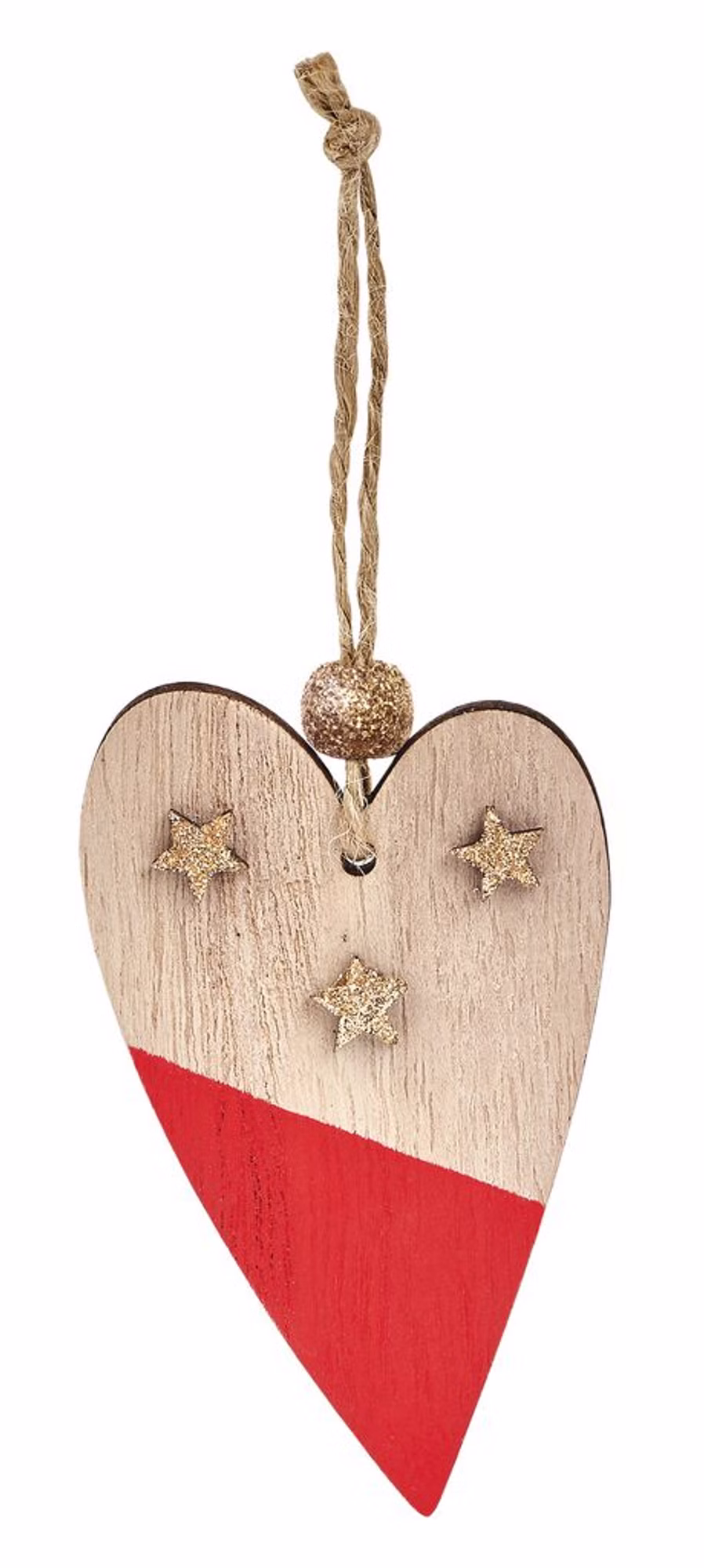 Das Set enthält ein Herz, einen Stern und einen Tannenbaum. Sie sind beidseitig bemalt und mit kleinen Glitzersternchen verziert.