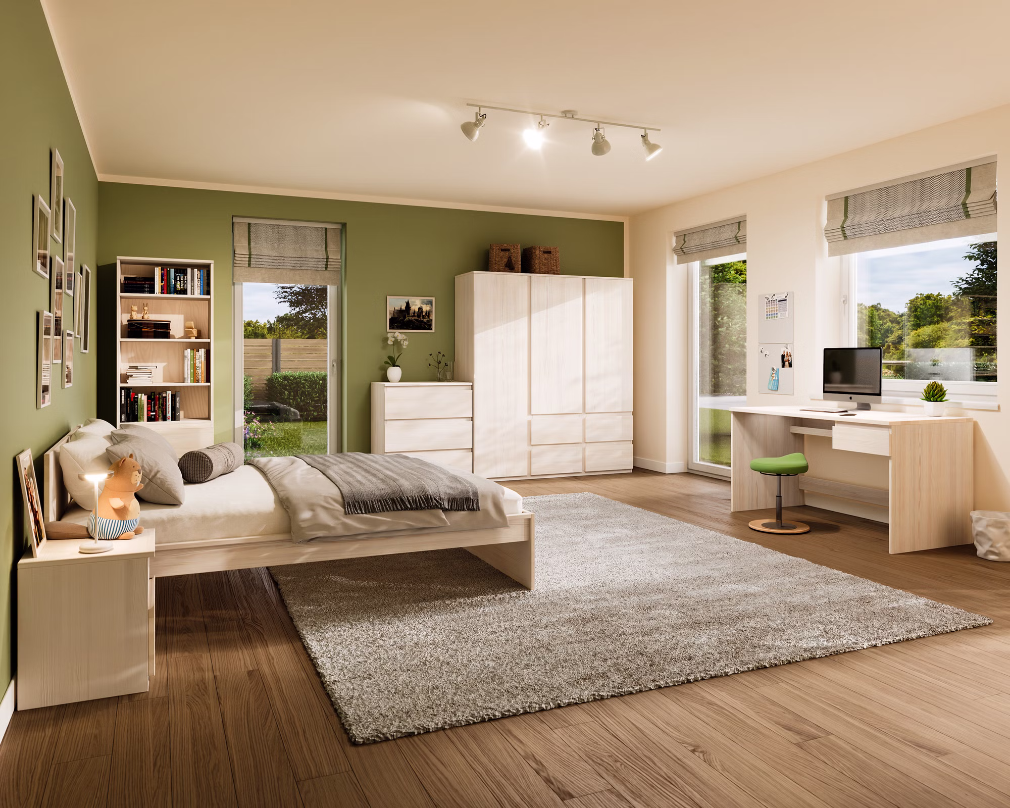 Unser Kleiderschrank Finn vereint großzügigen Stauraum mit stilvollem Design und höchster Funktionalität. Egal ob im Kinderzimmer, Wohnbereich oder Eltern-Schlafzimmer – der Kleiderschrank aus 100 % Bio-Massivholz fügt sich harmonisch in jedes Raumkonzept ein. Die klare Linienführung und die natürliche Maserung des Holzes auf den breiten Fronten verleihen jedem Raum eine warme und einladende Atmosphäre.