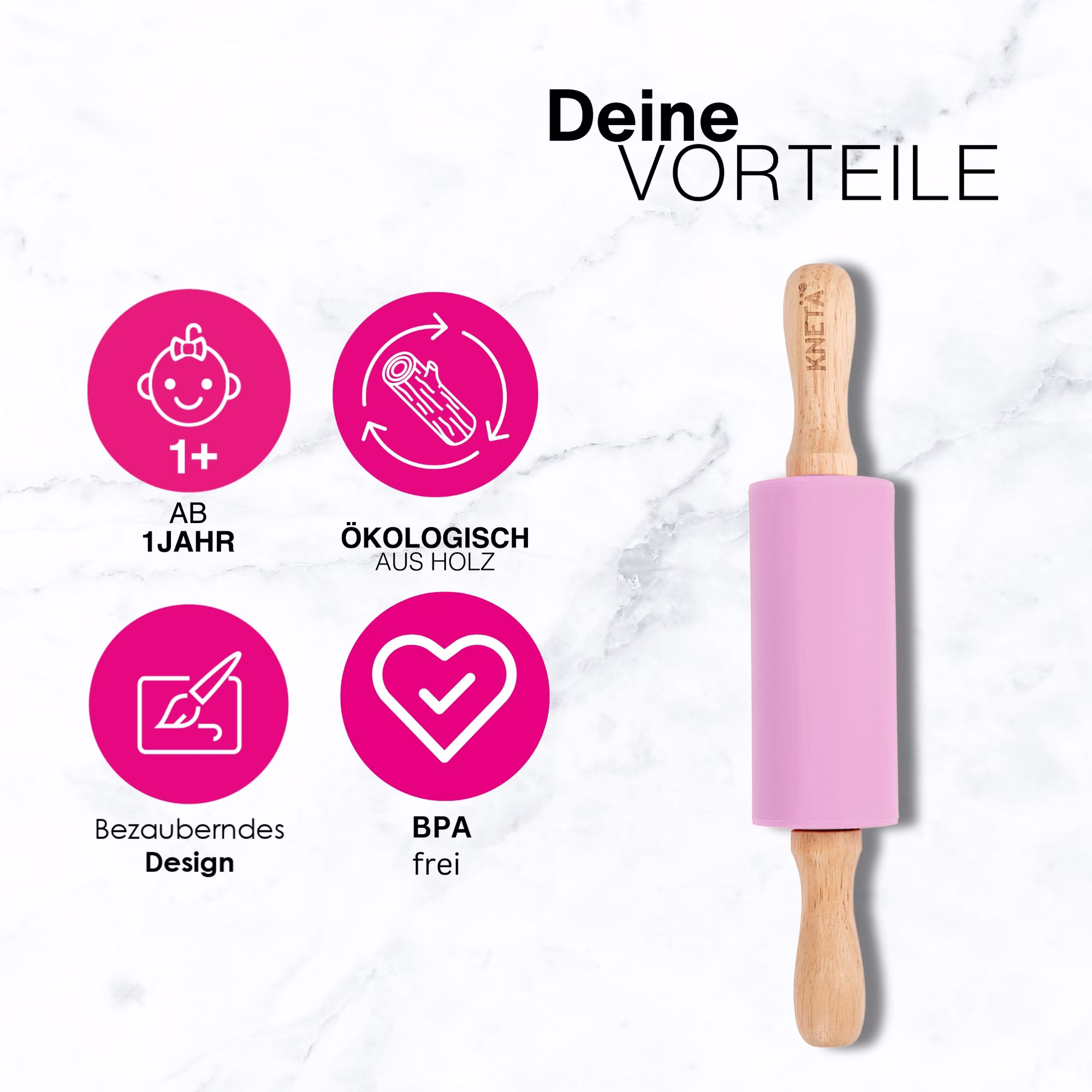 Der Rolli ist nicht nur ein Spielzeug, sondern auch ein Werkzeug, das die Sinne anregt und die Feinmotorik schult. Seine ergonomische Form passt perfekt in kleine Hände und erleichtert das Ausrollen der Knete.