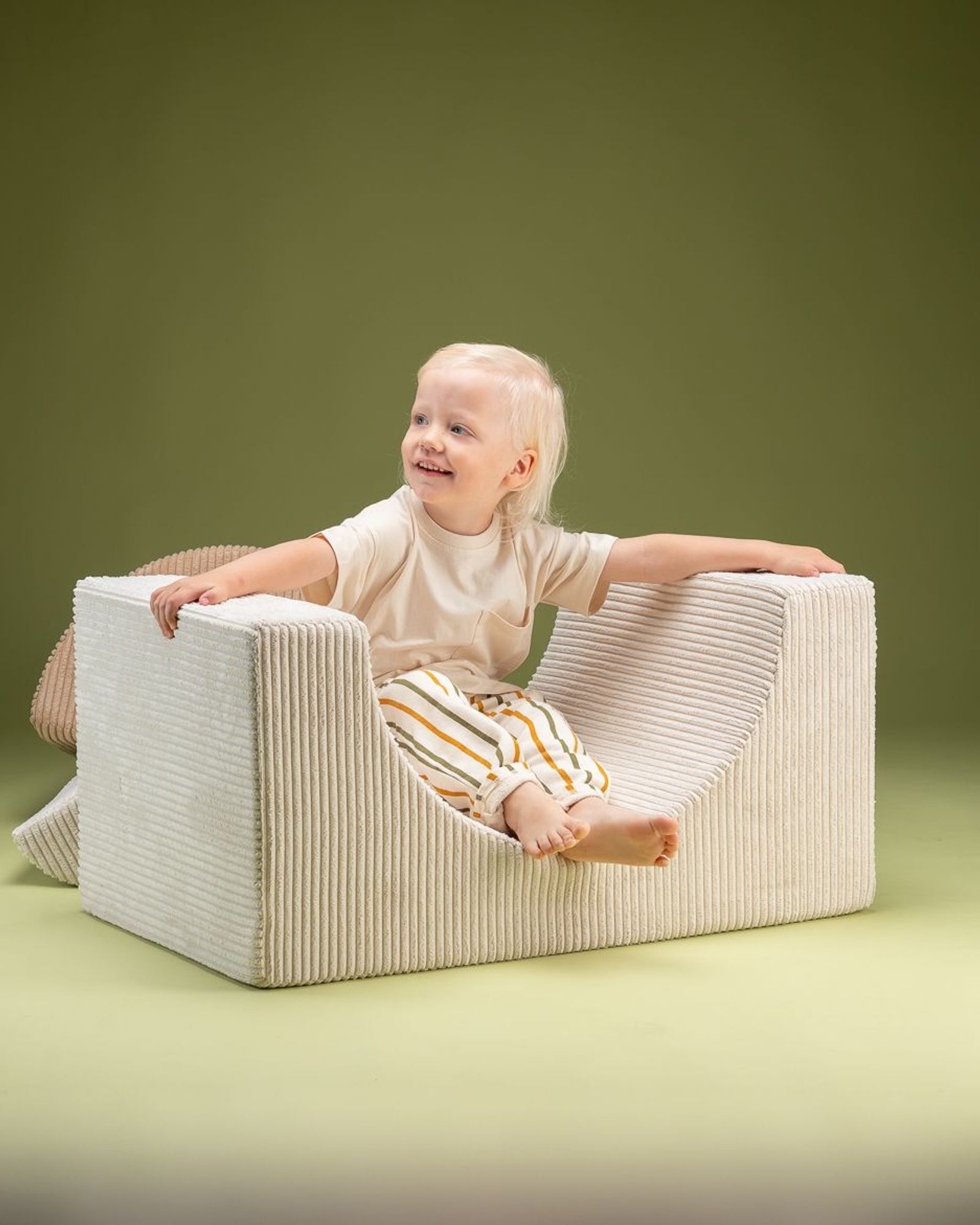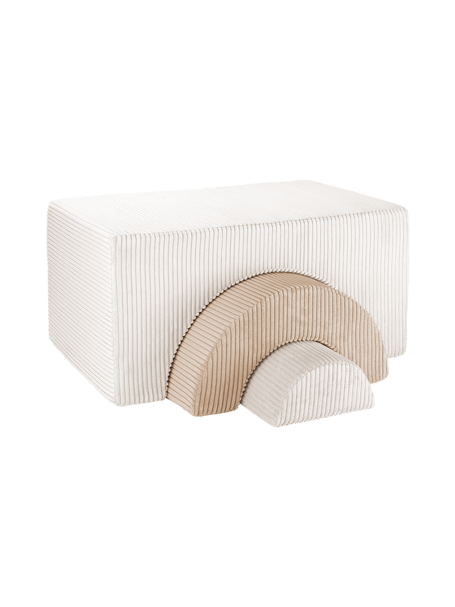 Das Spielset besteht aus robustem und dennoch federleichtem Schaumstoff. Mit seinen drei unterschiedlich geformten Modulen, die zusammen oder einzeln verwendet werden können, wird das Spielset zu einem Katalysator für grenzenlose Kreativität und Bauexperimente. Ob ein gemütlicher Stuhl, ein spielerischer Tisch, ein bequemer Hocker oder eine geheime Höhle - mit diesem vielseitigen Set sind sie bestens ausgestattet. Außerdem lässt sich der Cord Bezug, dank des Reisverschlusses, abnehmen und waschen.