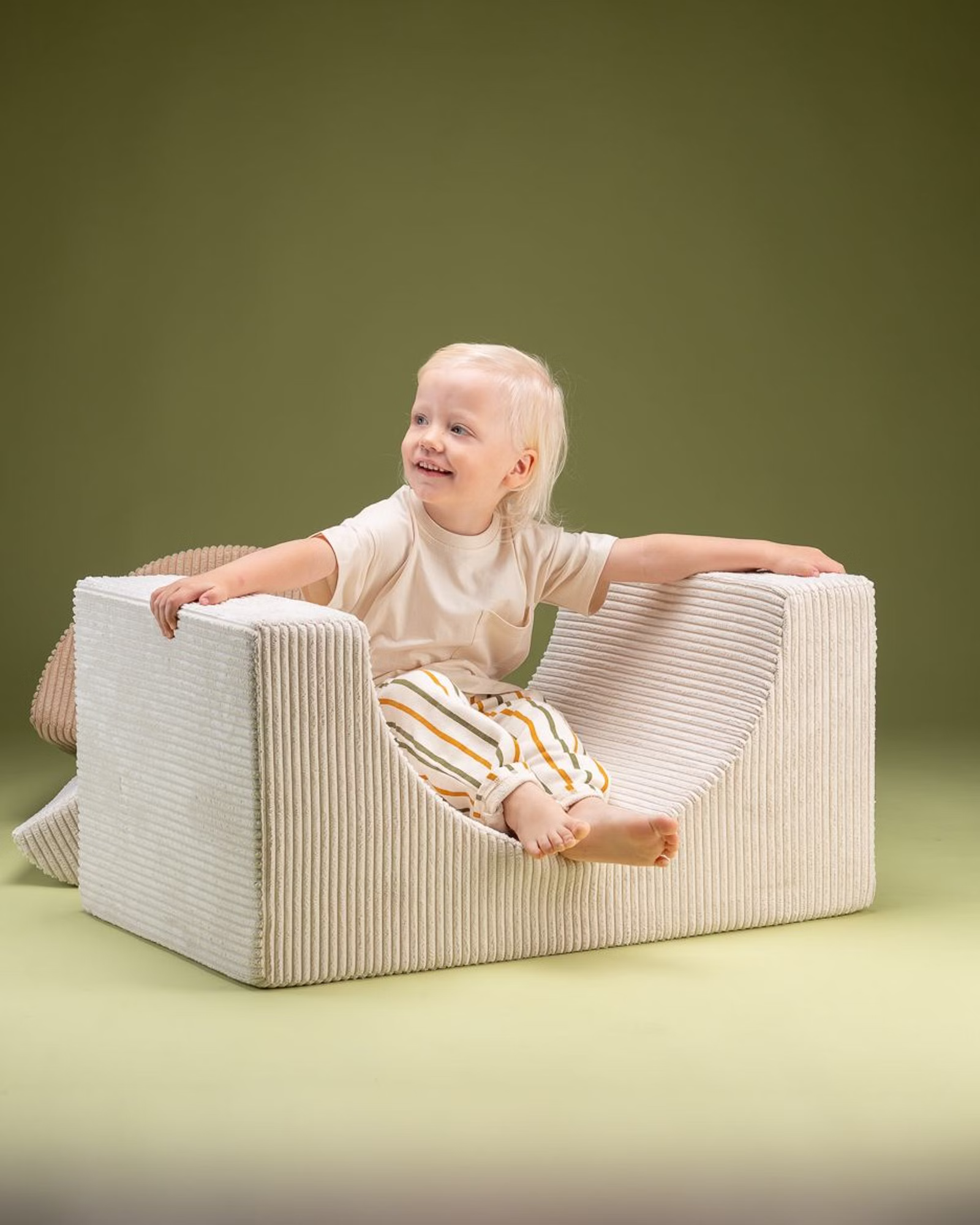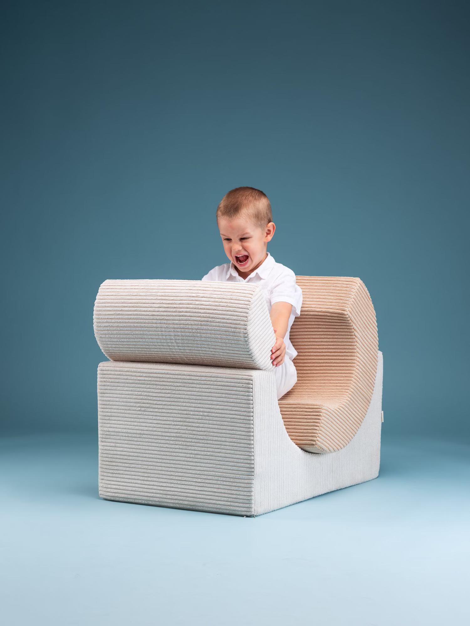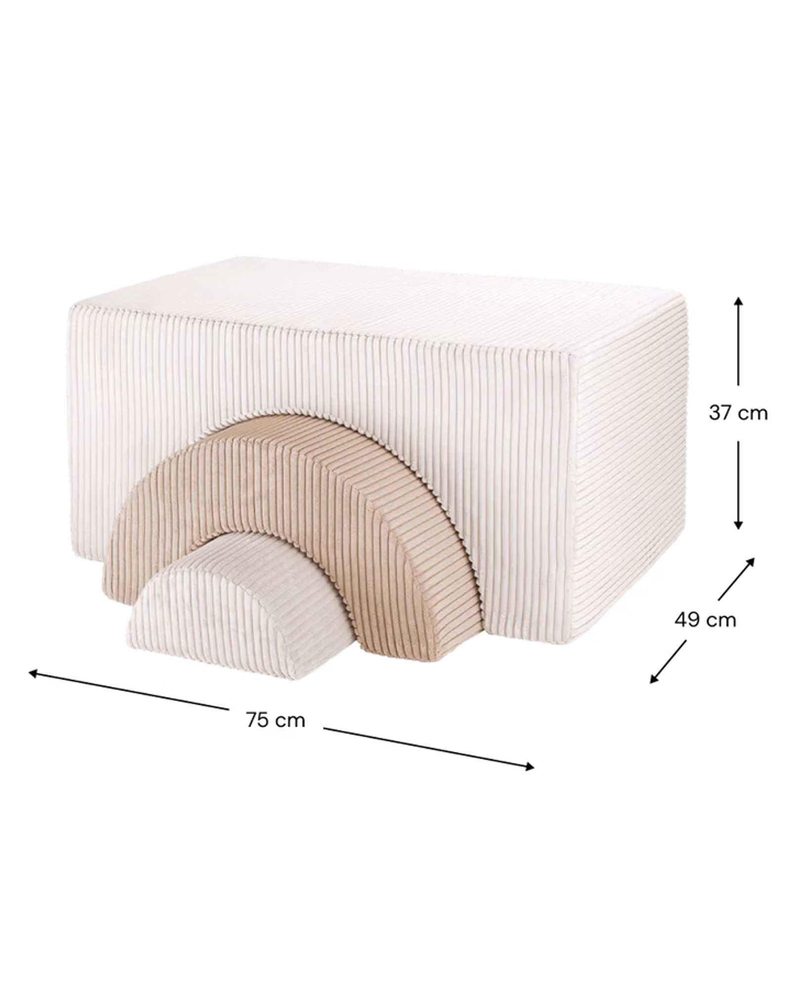 Das Spielset besteht aus robustem und dennoch federleichtem Schaumstoff. Mit seinen drei unterschiedlich geformten Modulen, die zusammen oder einzeln verwendet werden können, wird das Spielset zu einem Katalysator für grenzenlose Kreativität und Bauexperimente. Ob ein gemütlicher Stuhl, ein spielerischer Tisch, ein bequemer Hocker oder eine geheime Höhle - mit diesem vielseitigen Set sind sie bestens ausgestattet. Außerdem lässt sich der Cord Bezug, dank des Reisverschlusses, abnehmen und waschen.