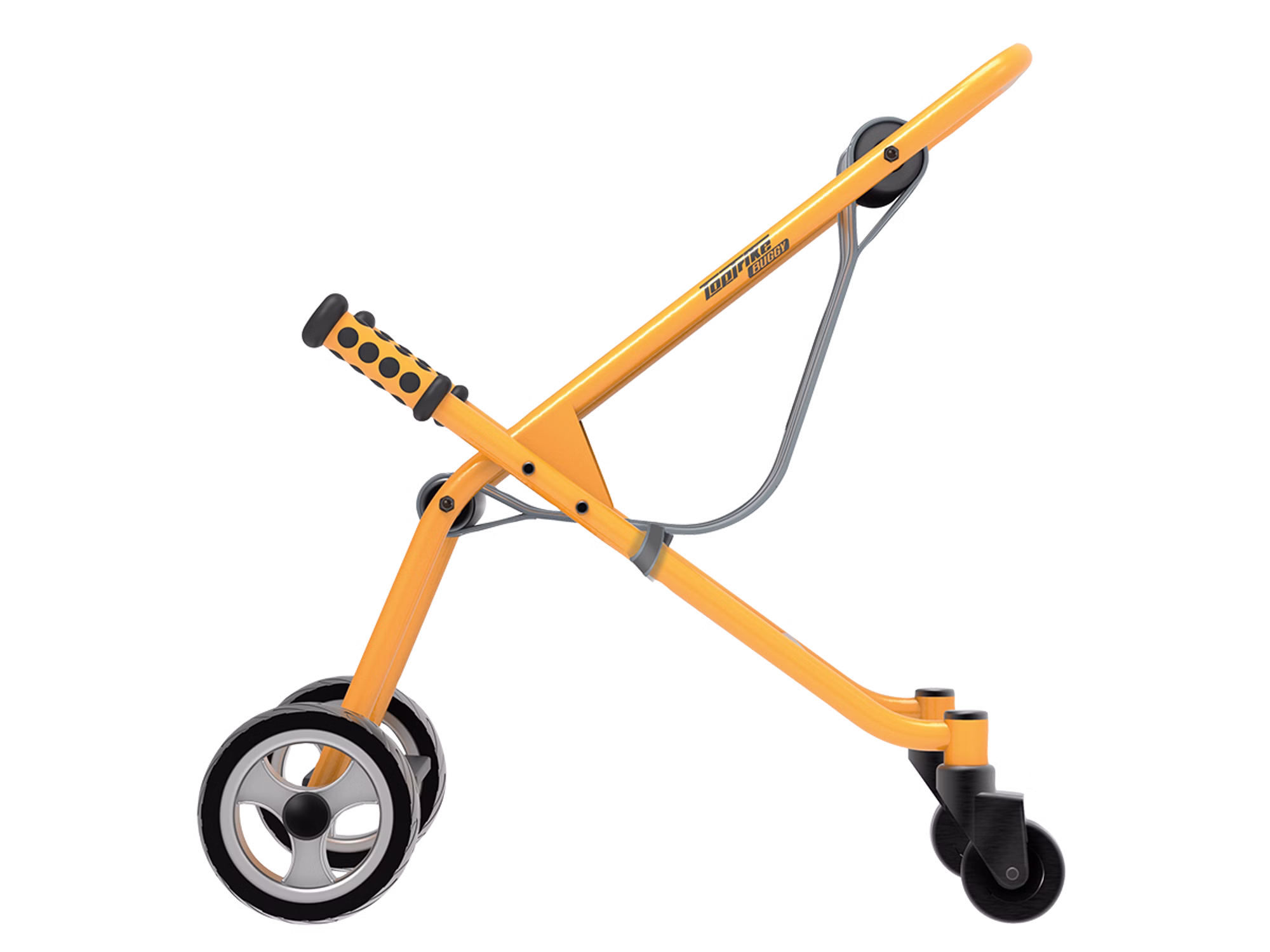 Durch die hinteren mitlenkenden Rollen ist der Buggy unglaublich wendig und auch kleine Kurven lassen sich problemlos fahren. Das bringt Spaß für den Fahrer sowie für den Schiebenden. Auch bei kleinen, engen Kuren bieten die ausgestellten Griffe einen festen Halt und der Geschobene hat den Eindruck den Buggy selbst zu steuern.