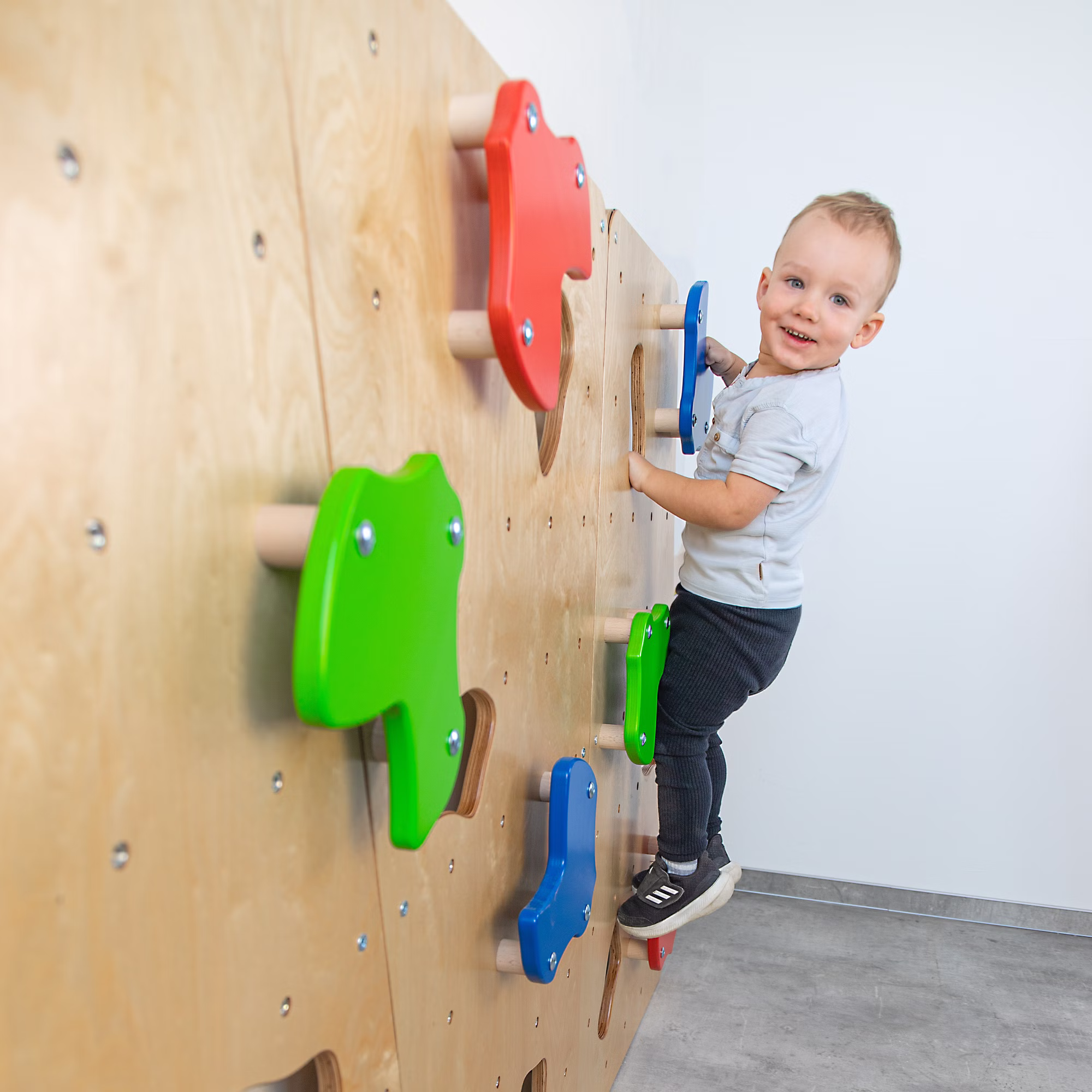 Die Kletterwand Junior für Kleinkinder unter 3 Jahren bietet eine sichere und spannende Möglichkeit, die motorischen Fähigkeiten und die Hand-Fuß-Auge-Koordination der Kleinsten zu fördern.