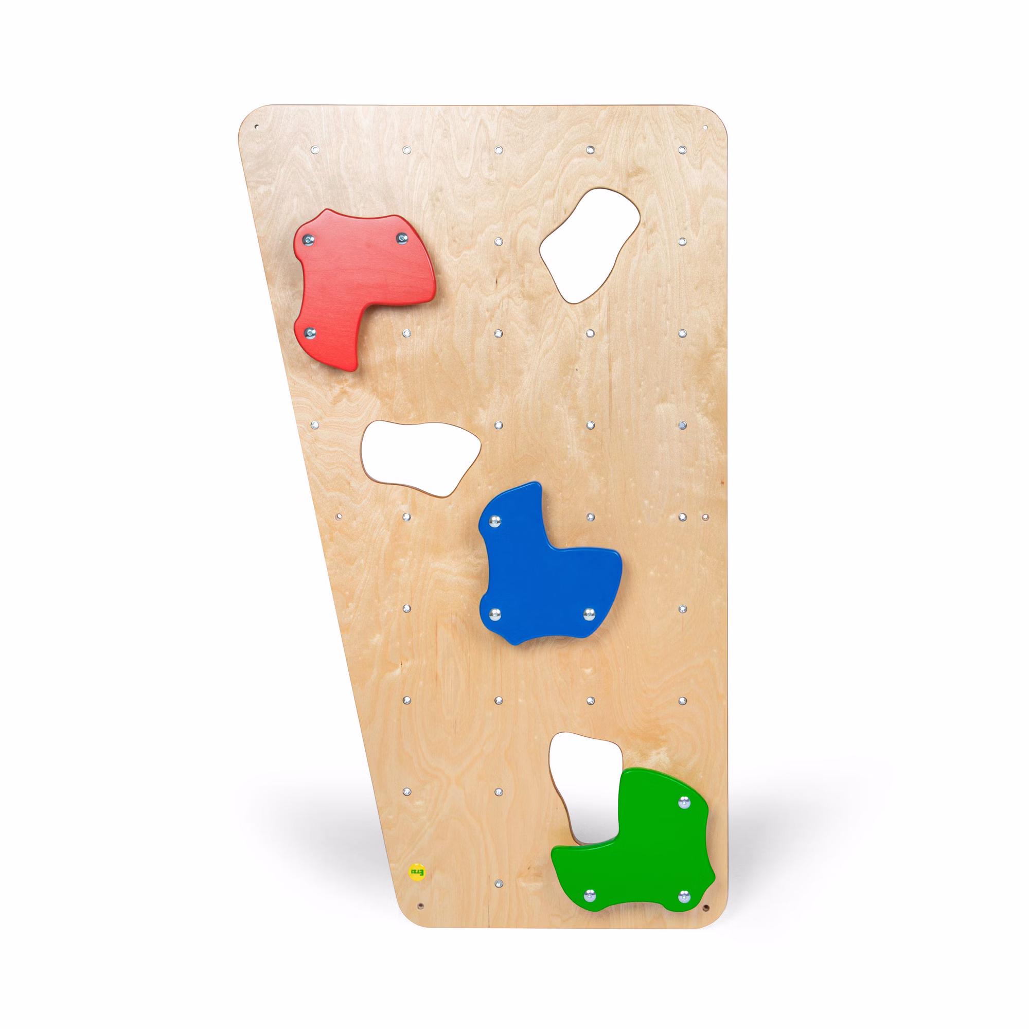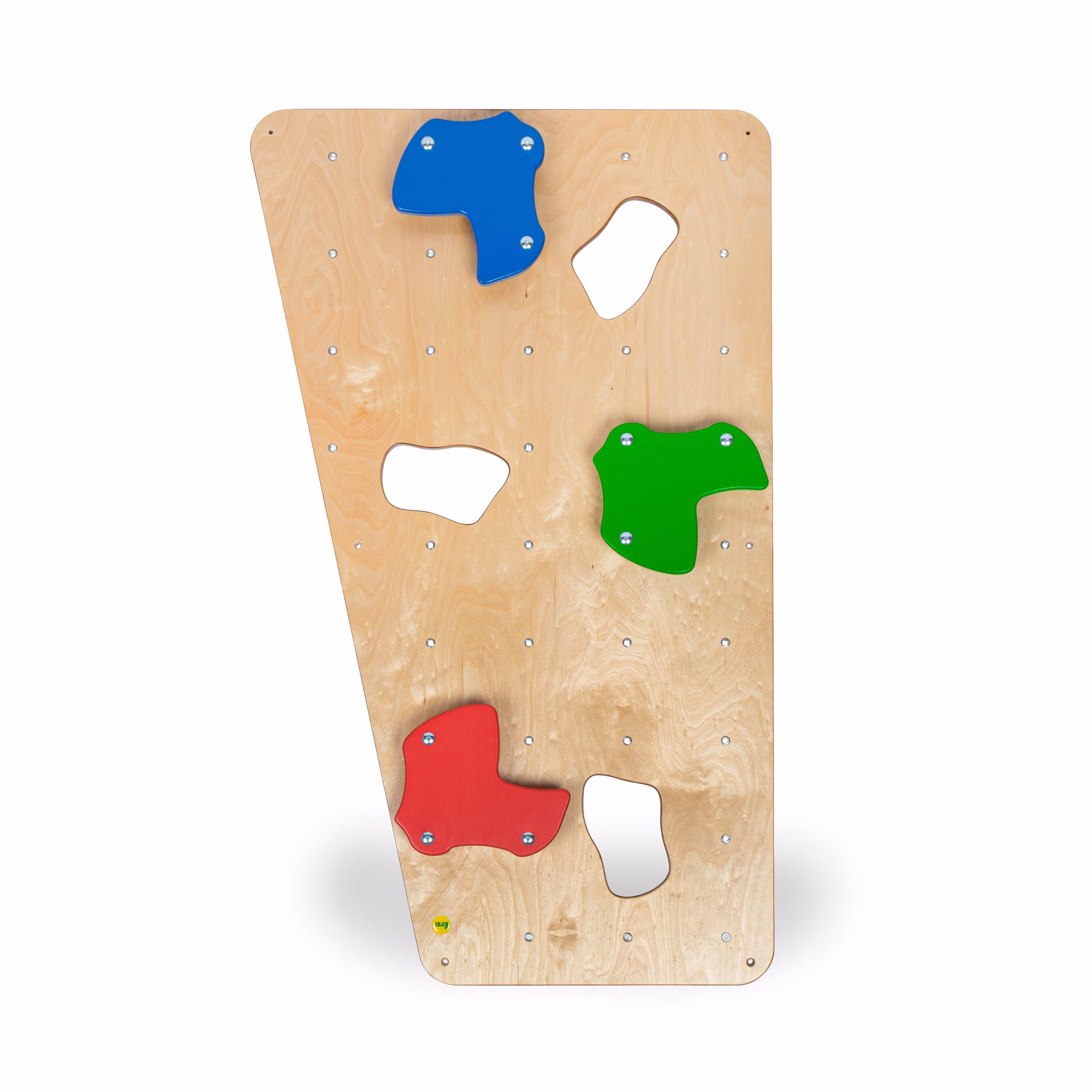 Diese speziell entwickelte Kletterwand zur Wandmontage ist mit integrierten Griffmulden ausgestattet, die kleinen Kletterern sicheren Halt bieten. Zusätzlich werden drei Klettergriffe mitgeliefert, die dank eines Rasters aus Bohrungen individuell und bedürfnisgerecht an der Kletterwand angebracht werden können. Die Kletterwand Junior ist modular konzipiert, sodass mehrere Kletterwände nebeneinander an der Wand montiert und kombiniert werden können. Dies ermöglicht eine flexible Gestaltung und Anpassung des Kletterbereichs. Die Klettergriffe können dabei auch über zwei Kletterwände hinweg montiert werden, um noch mehr Kletterspaß und Herausforderungen zu bieten.
