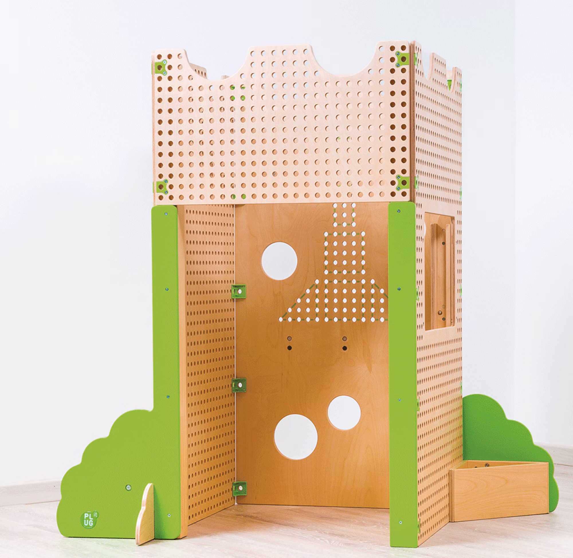 Das Activity-Spielhaus-Set bietet Kindern viel Platz für kreatives Spiel. Es besteht aus vier Grund-Bauteilen mit Aufbewahrungsboxen und ist somit von allen Seiten bespielbar.