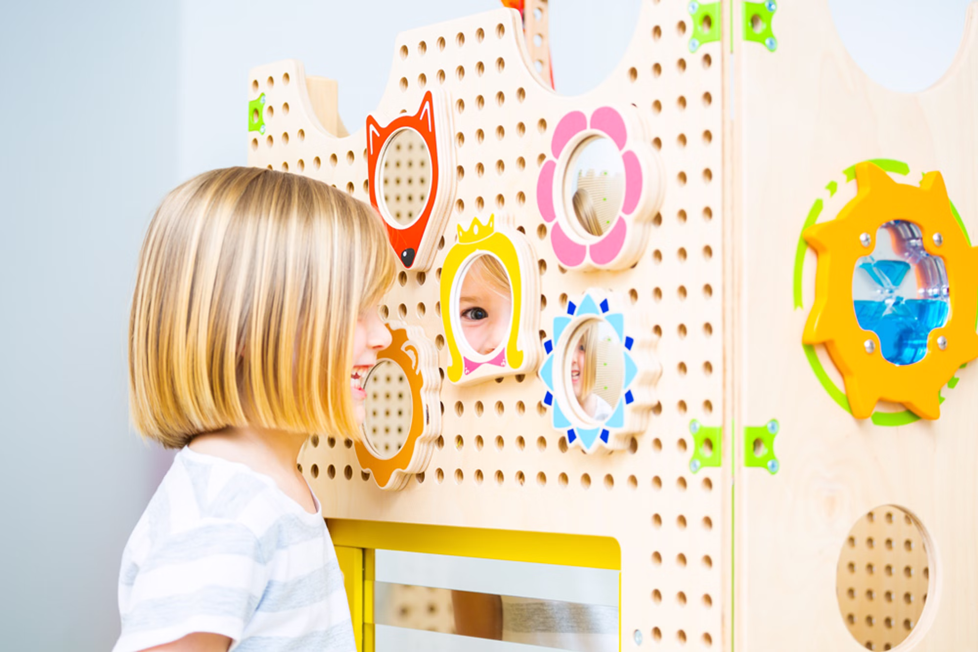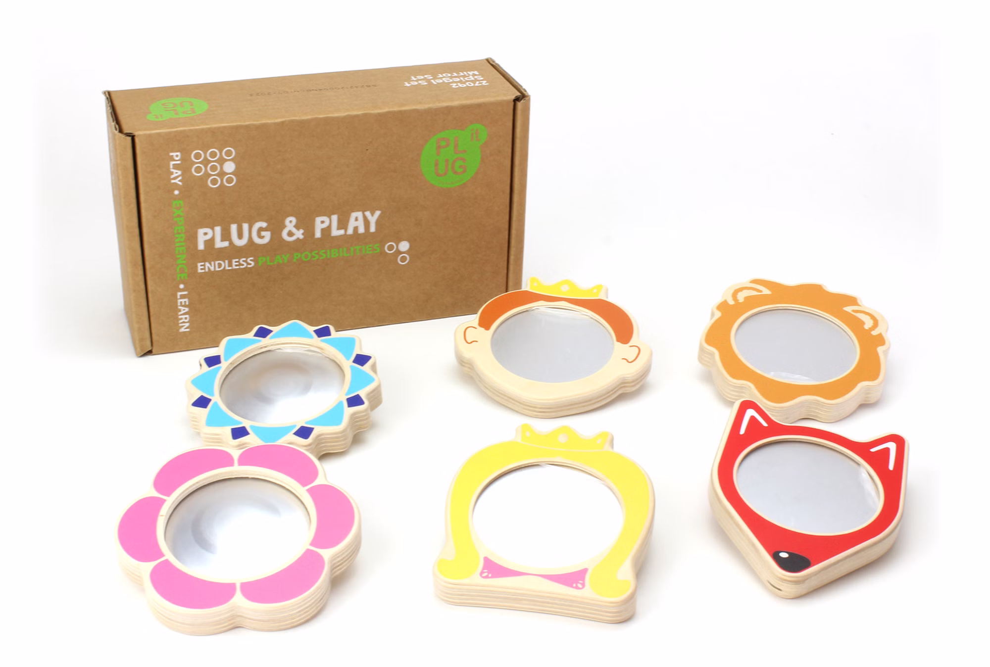 Spiegel sind immer wieder faszinierend. Mit den sechs verschiedenen Spiegeln können die Kinder in die Welt der Charaktere eintauchen und dem freien Rollenspiel sind keine Grenzen gesetzt. Zwei Spiegel haben einen konvex Spiegel und geben die Welt auf neue, andersartige Weise zurück.