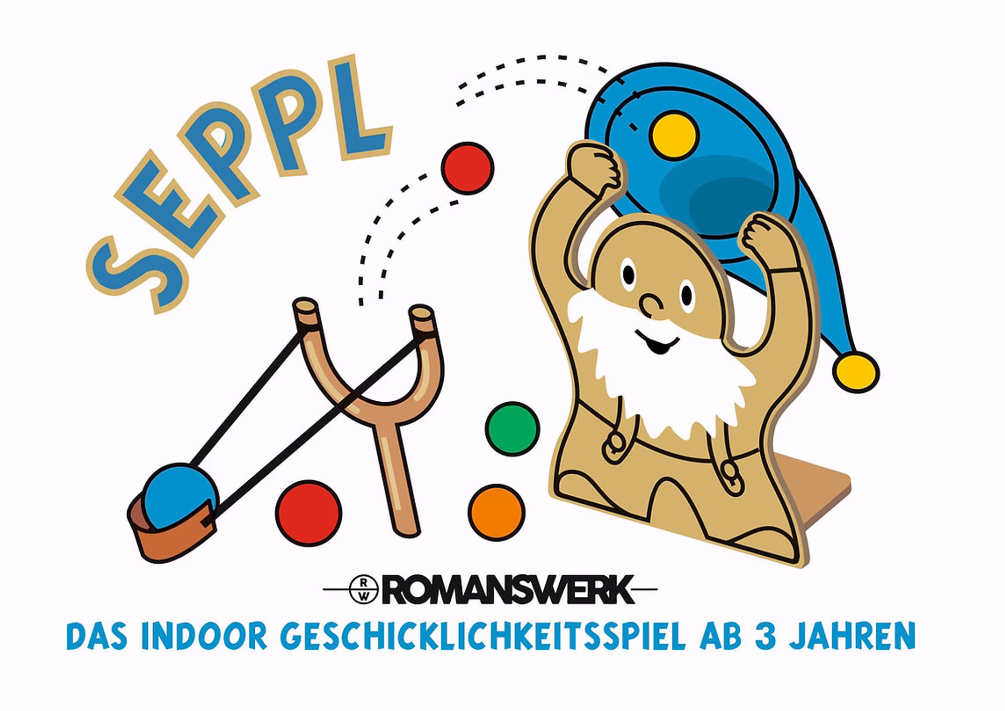 Der Zwerg Seppl hält seine Zwergenmütze hoch und freut sich über viele bunte Filzkugeln, die er fangen darf. Das Treffen und nicht das Schießen steht im Vordergrund. Seppl ist 45 cm groß und kann auch gerne angemalt werden.