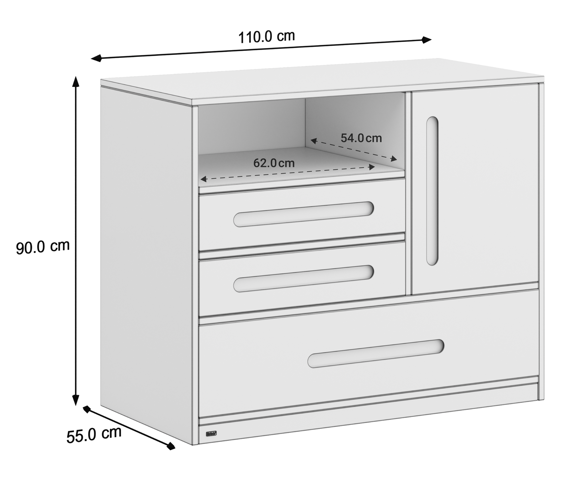 Maße: H 90 x B 110 x T 55 cm