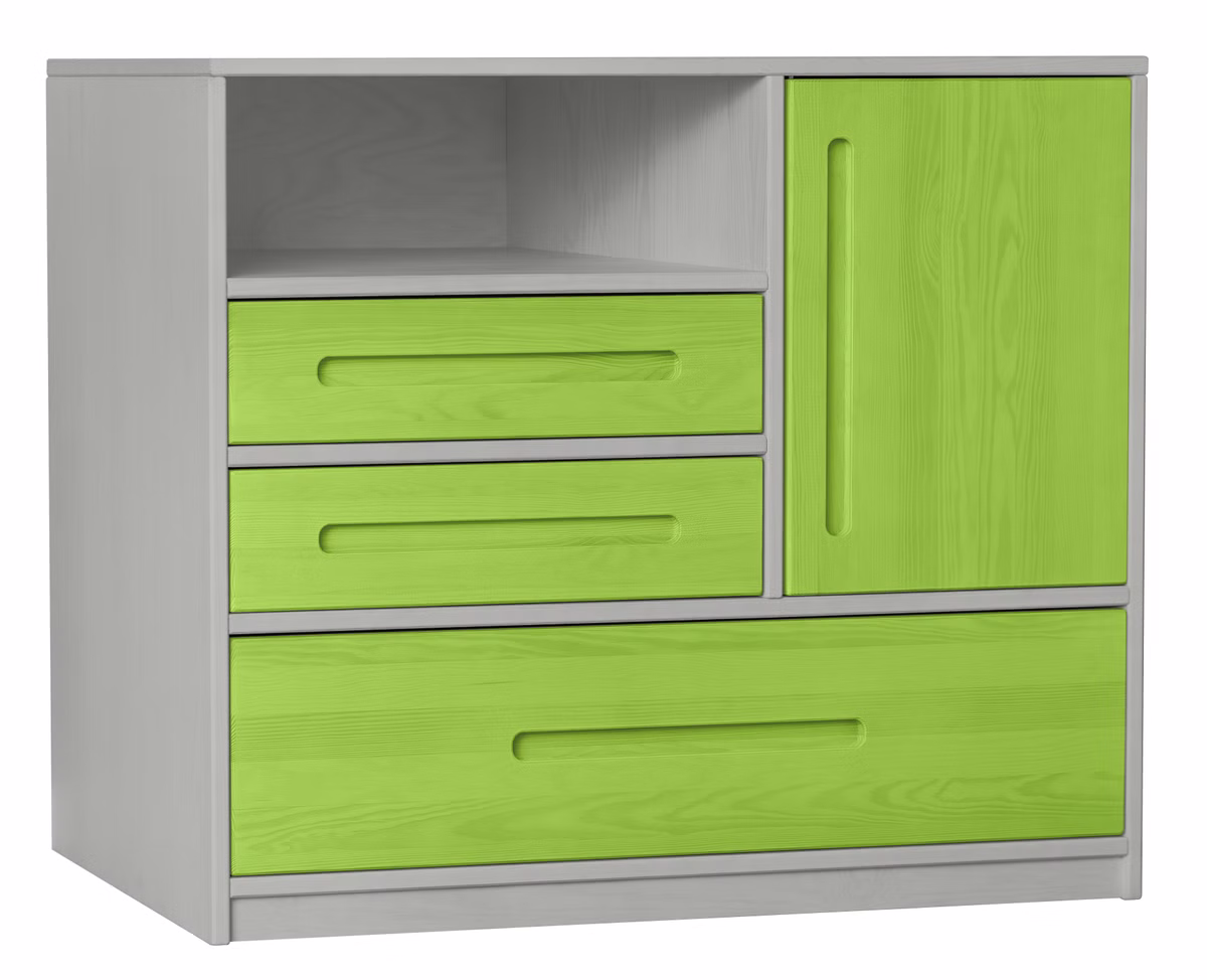 Auch einzeln lässt sich unsere Lina Kommode dank der zeitlosen, elegant-gefrästen Griffmulden harmonisch in die bestehende Einrichtung einfügen und dient zur Aufbewahrung von Kleidung, Spielsachen und weiteren Gegenständen.