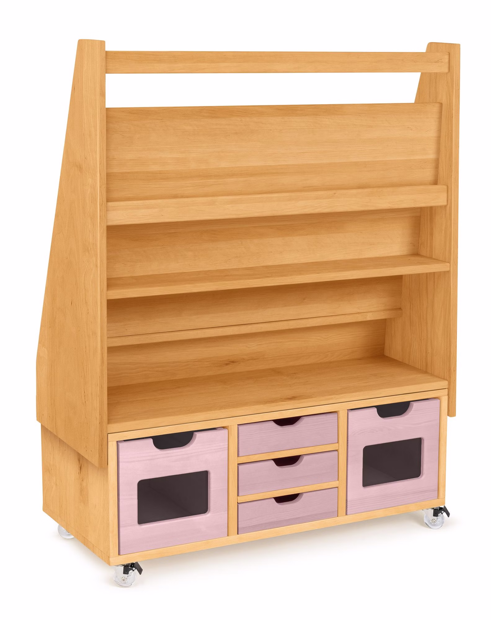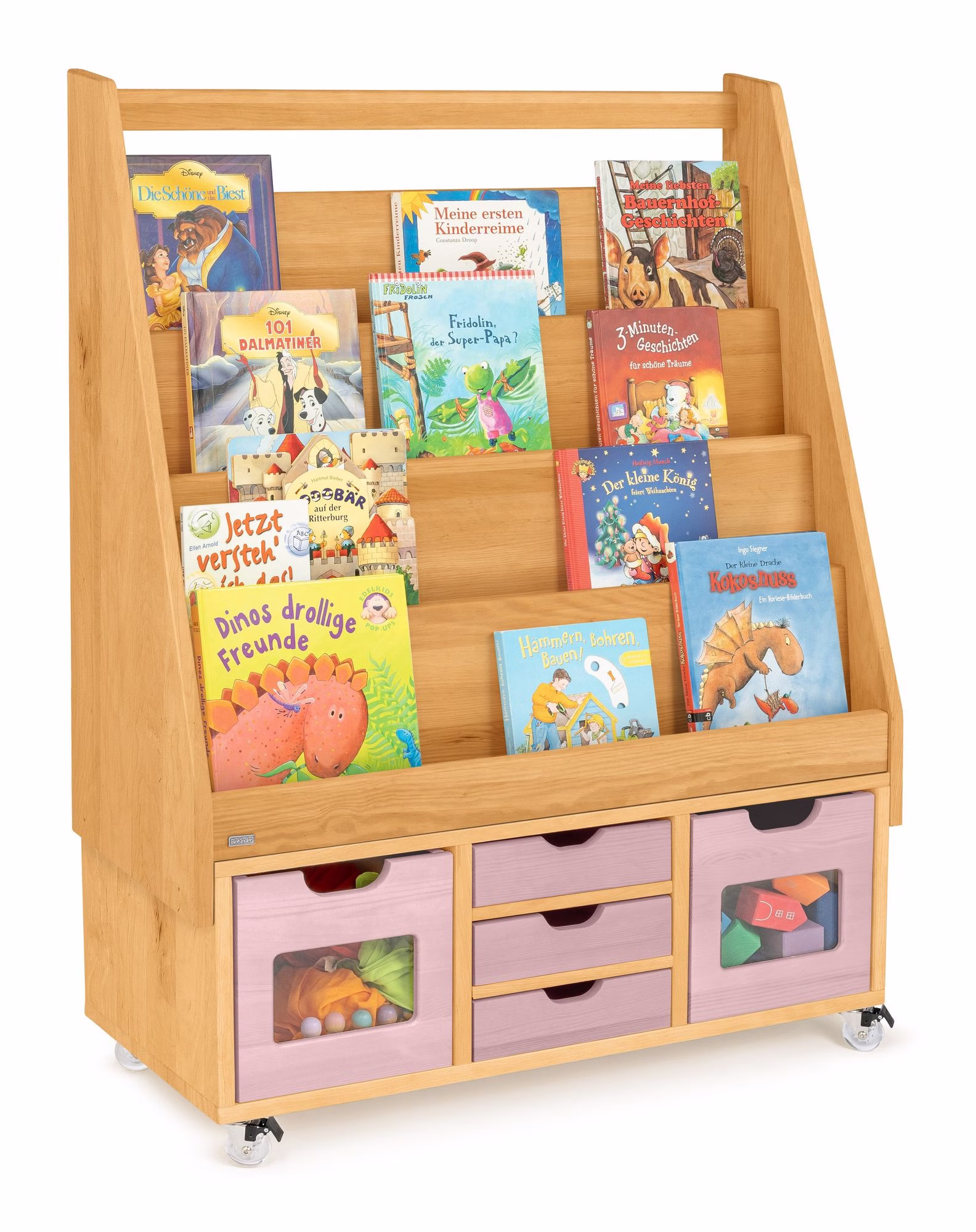 Der geniale Alleskönner für den Kita-Alltag. Diese Regalkombination erlaubt das Transportieren von Büchern oder Bastelutensilien innerhalb des Kindergartens.