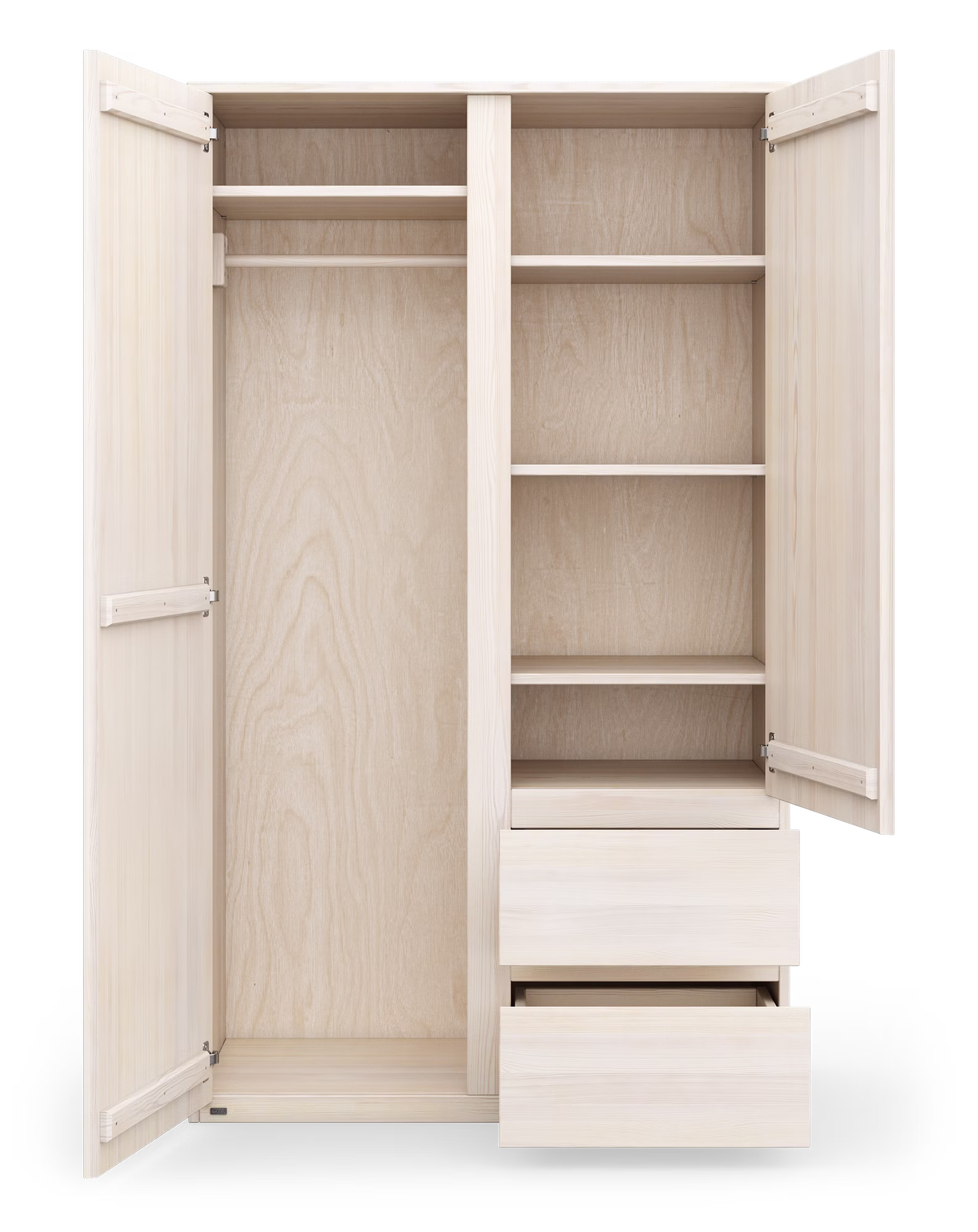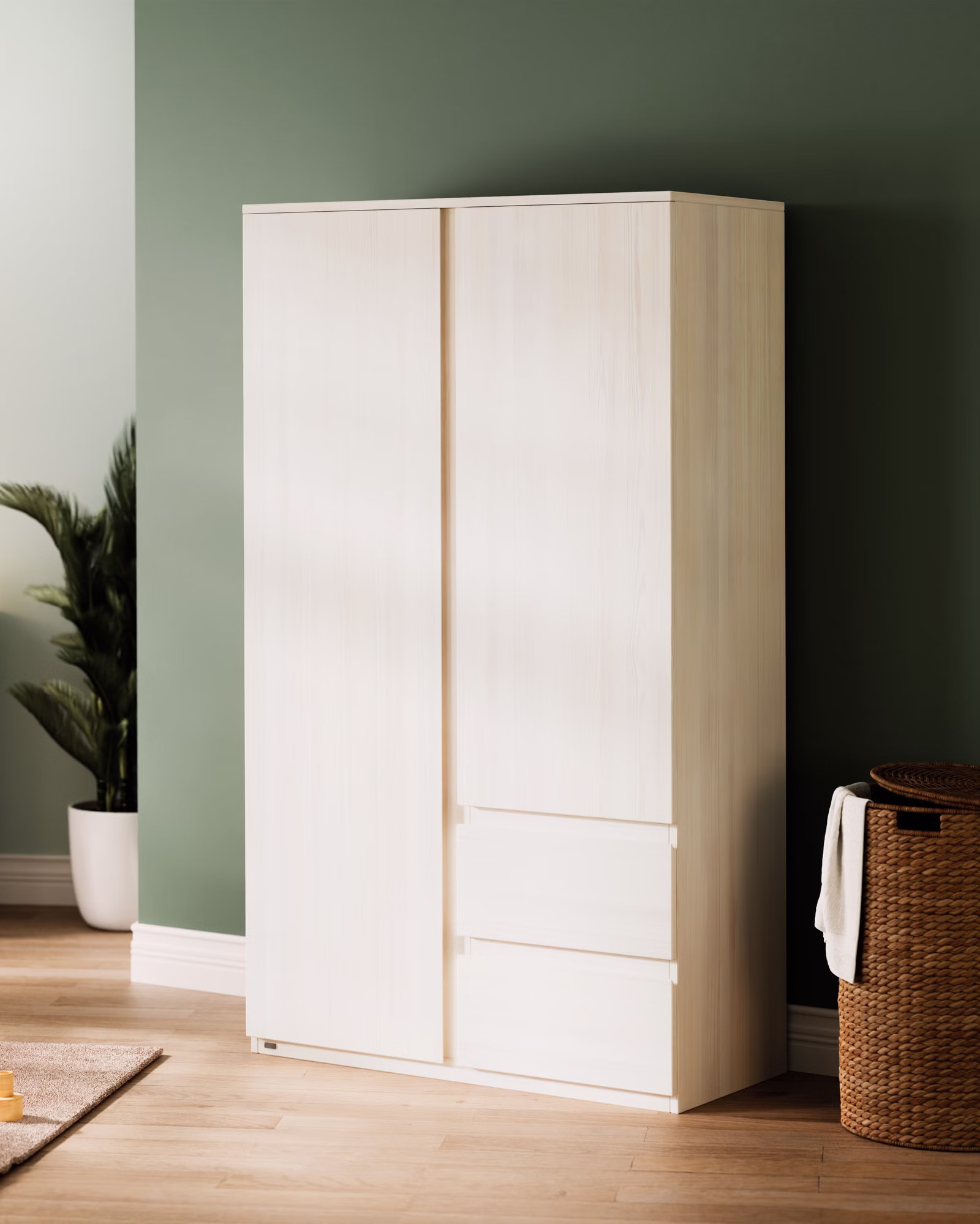 Unser Kleiderschrank Finn bietet großzügigen Stauraum und verbindet Funktionalität mit ansprechendem Design. Ob im Kinderzimmer oder auch im Wohn- oder im Eltern-Schlafzimmer, der Kleiderschrank aus 100% Bio-Massivholz fügt sich harmonisch in jedes Raumkonzept ein. Seine klare Linienführung und die schöne Maserung des Holzes auf den breiten Fronten verleihen jedem Raum eine besondere Note.