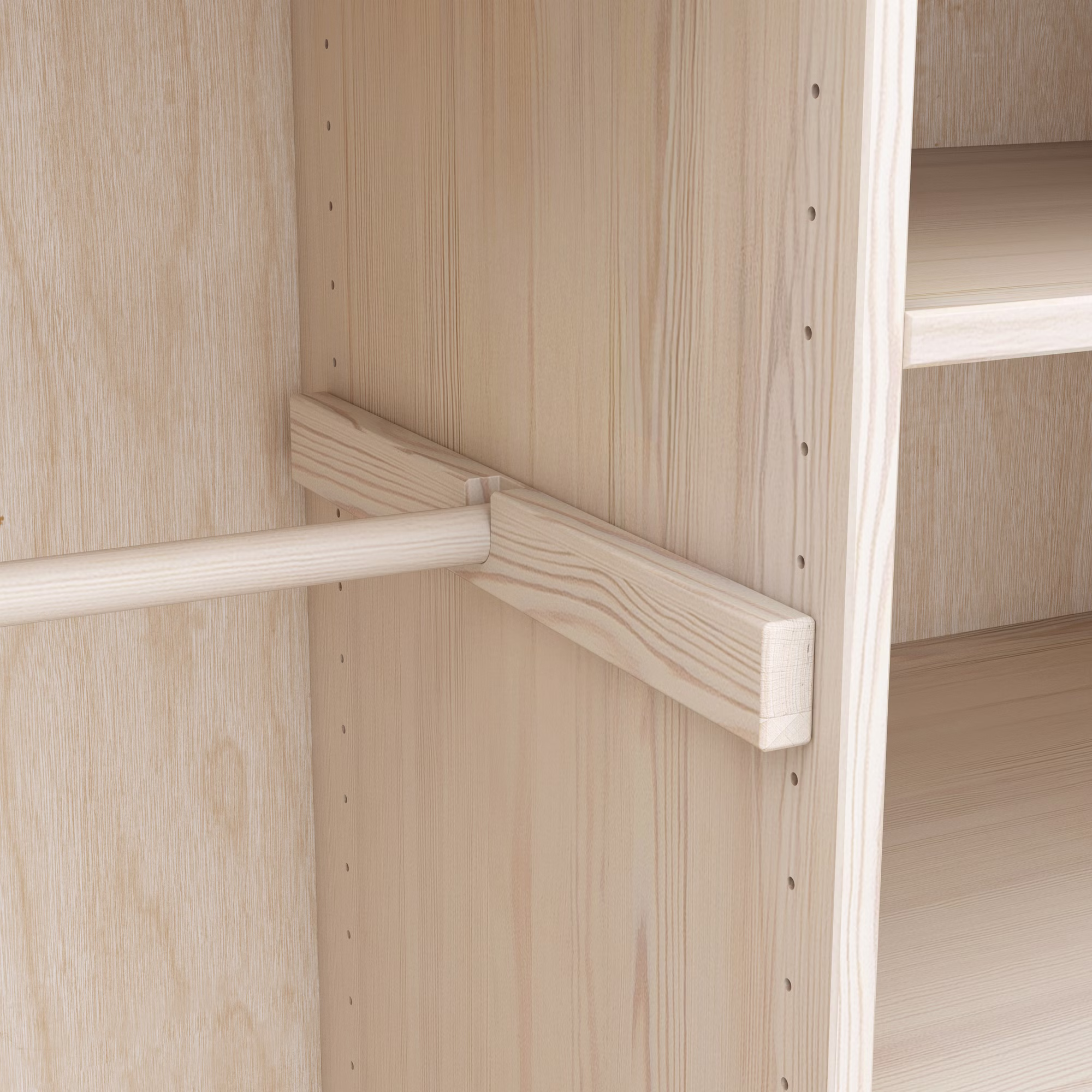 Eine flexibel positionierbare Kleiderstange ergänzt den Schrank sinnvoll und bietet Platz für Jacken, Hemden oder Kleider. So wächst der Stauraum mit den Bedürfnissen Ihres Kindes mit und passt sich immer wieder neu an – vom Babyalter bis weit darüber hinaus.
