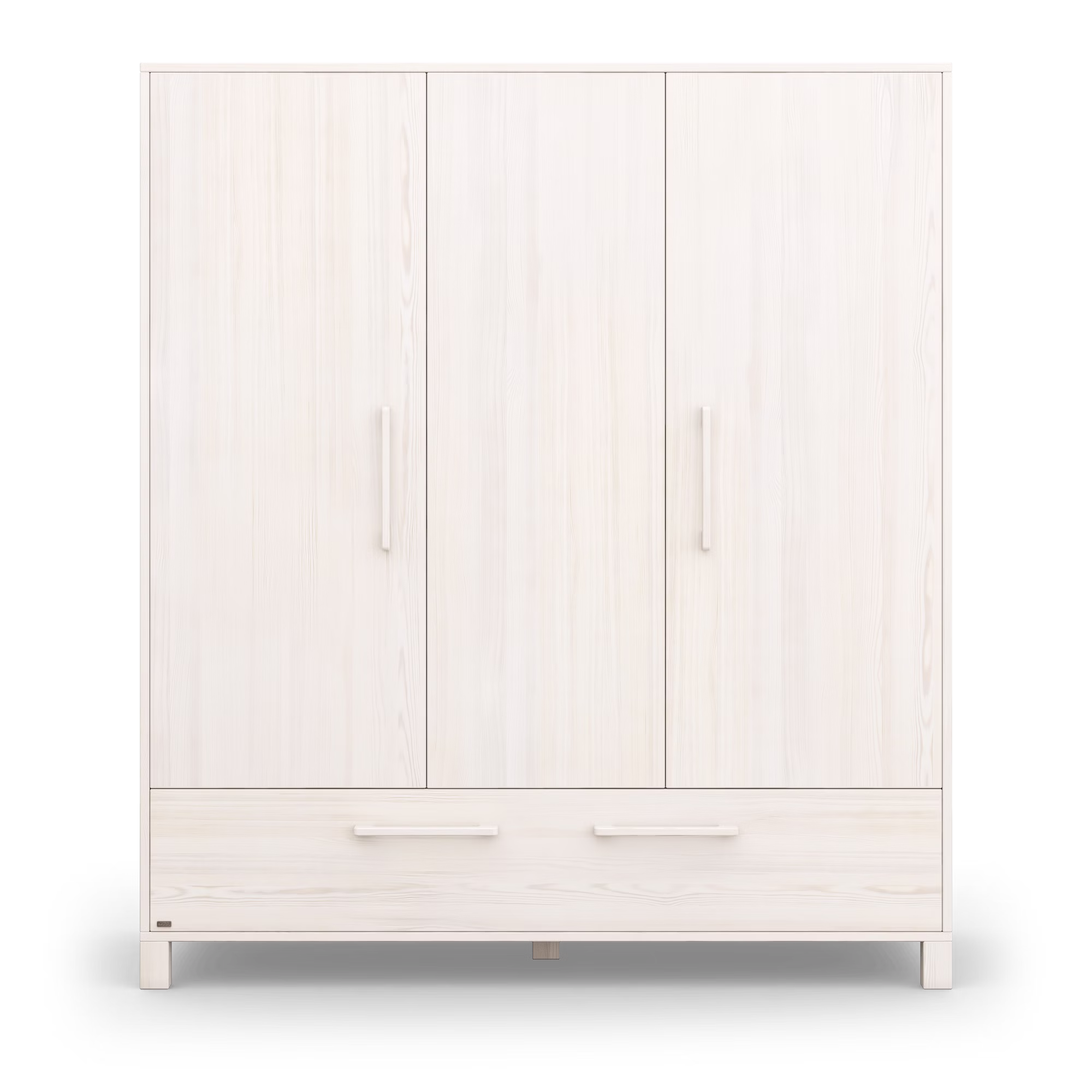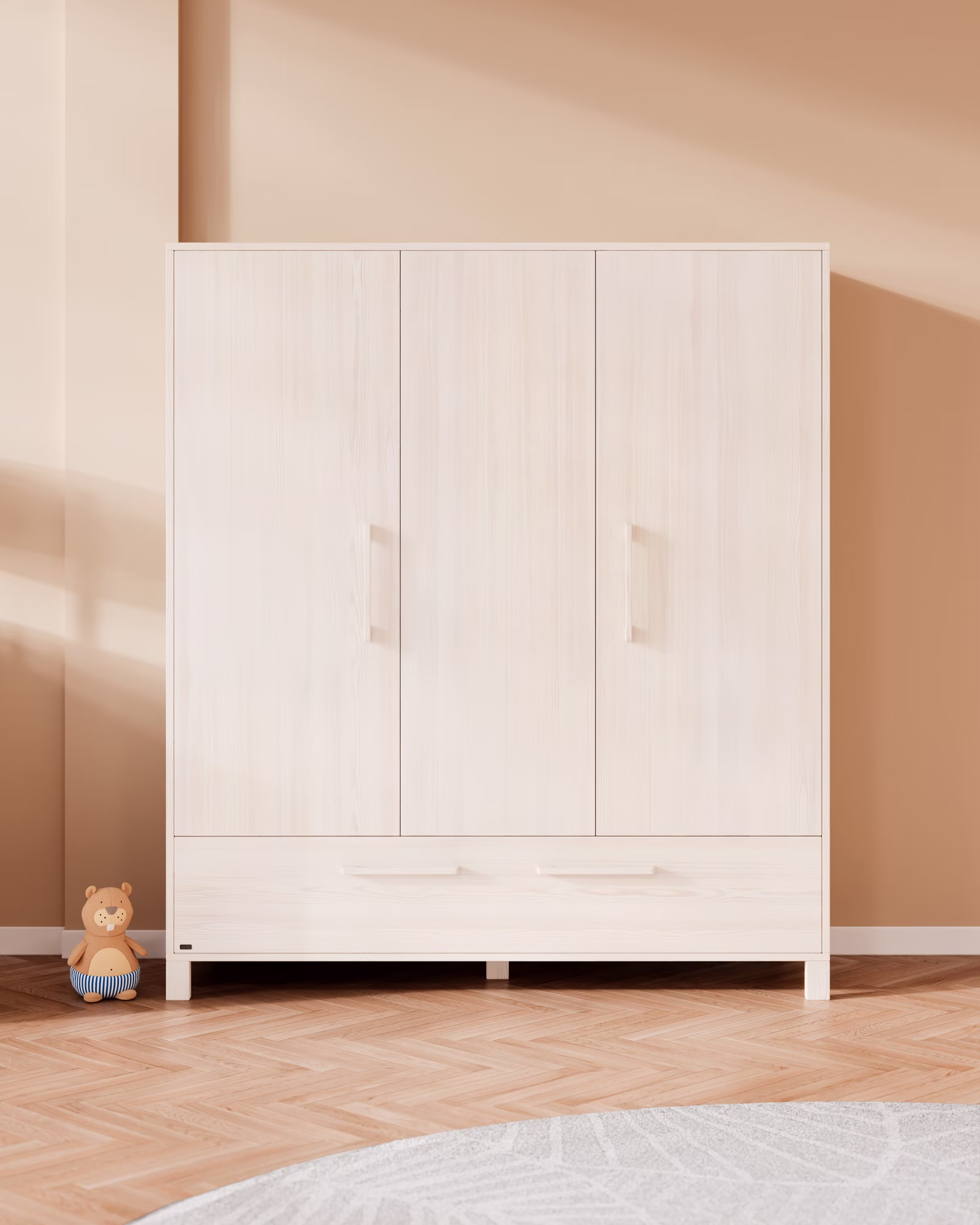 Der Theo Kleiderschrank 3-türig vereint zeitloses skandinavisches Design mit einer besonders hochwertigen Verarbeitung aus reinem Massivholz. Von Eltern für Familien entwickelt und von Schreinermeistern in bester Qualität umgesetzt. Ein treuer Weggefährte für die ganze Kindheit und weit darüber hinaus.