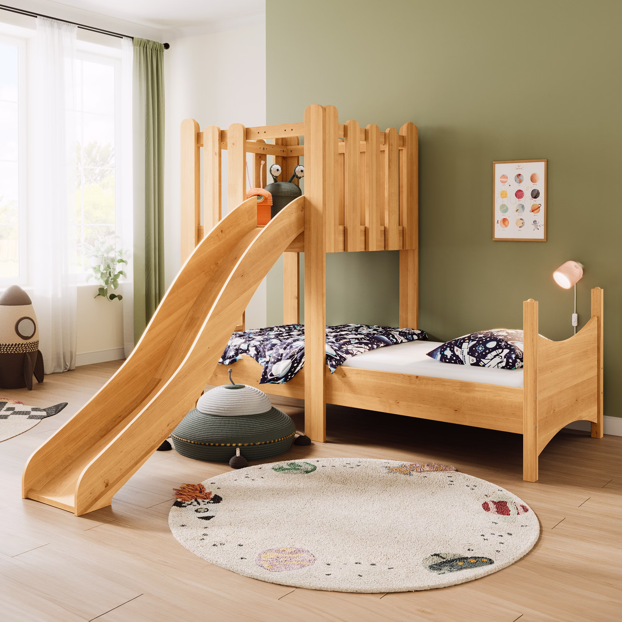 Im Inneren des UFOs befindet sich ein roter Textil-Alien mit einem Auge, der das Schiff zu weit entfernten Zielen steuert. Eine perfekte Aufbewahrungslösung für Kinder, ideal für Spielzeug, Bücher oder andere kosmische Schätze, die Ihre kleinen Entdecker entdecken.