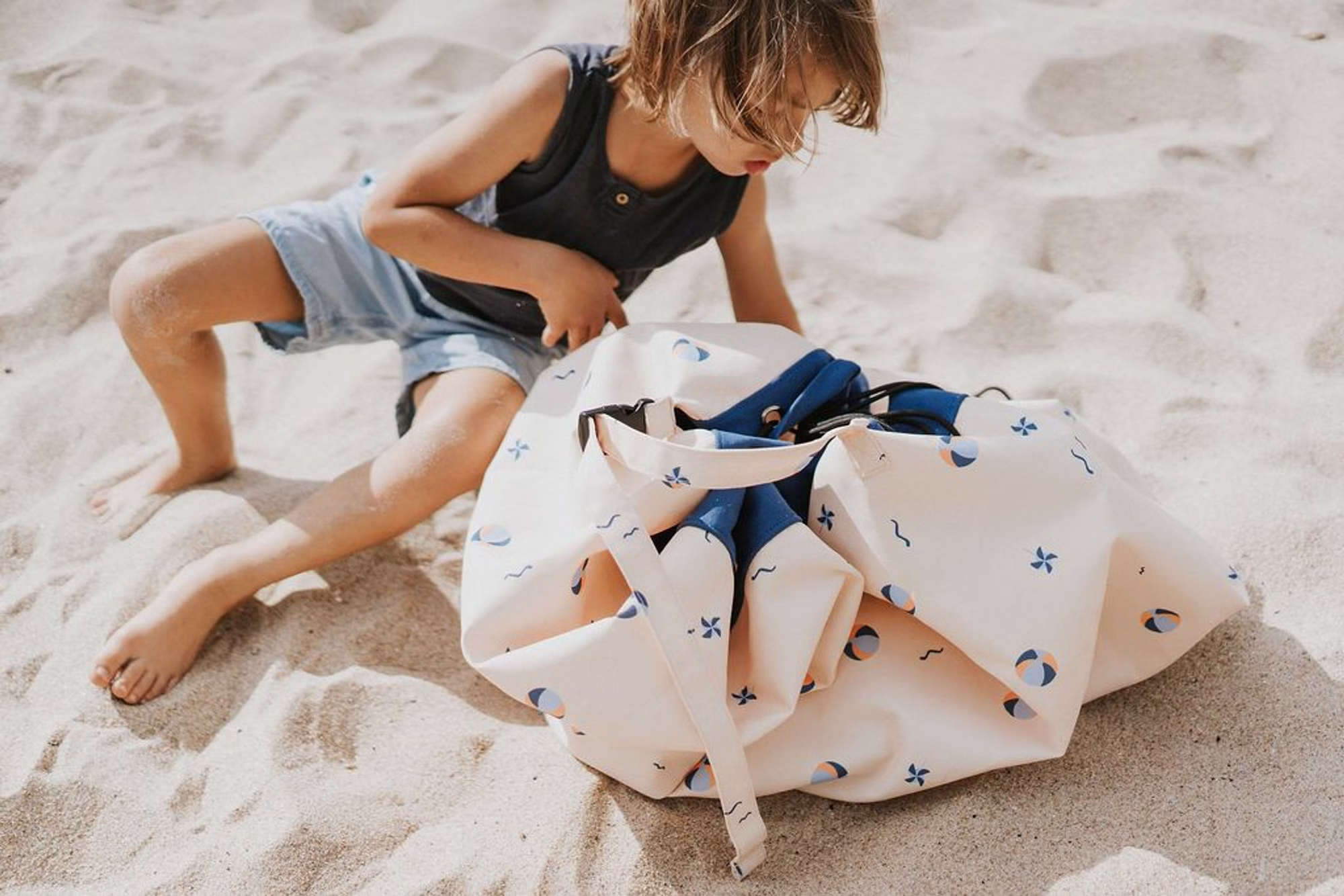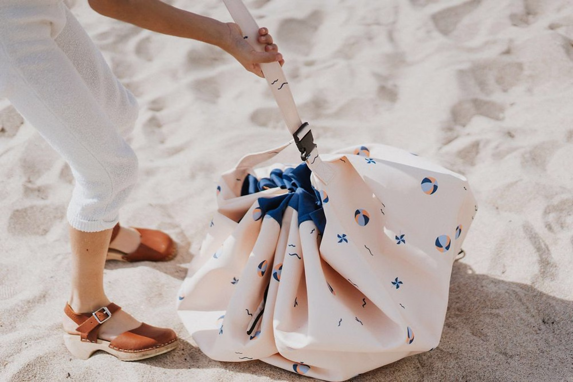 Ob zu Hause oder unterwegs: Der multifunktionale Sack ist ein echtes Organisationstalent. Er lässt sich als Spielteppich, Spielzeugbeutel, Picknickdecke oder sogar als Strandtasche verwenden.