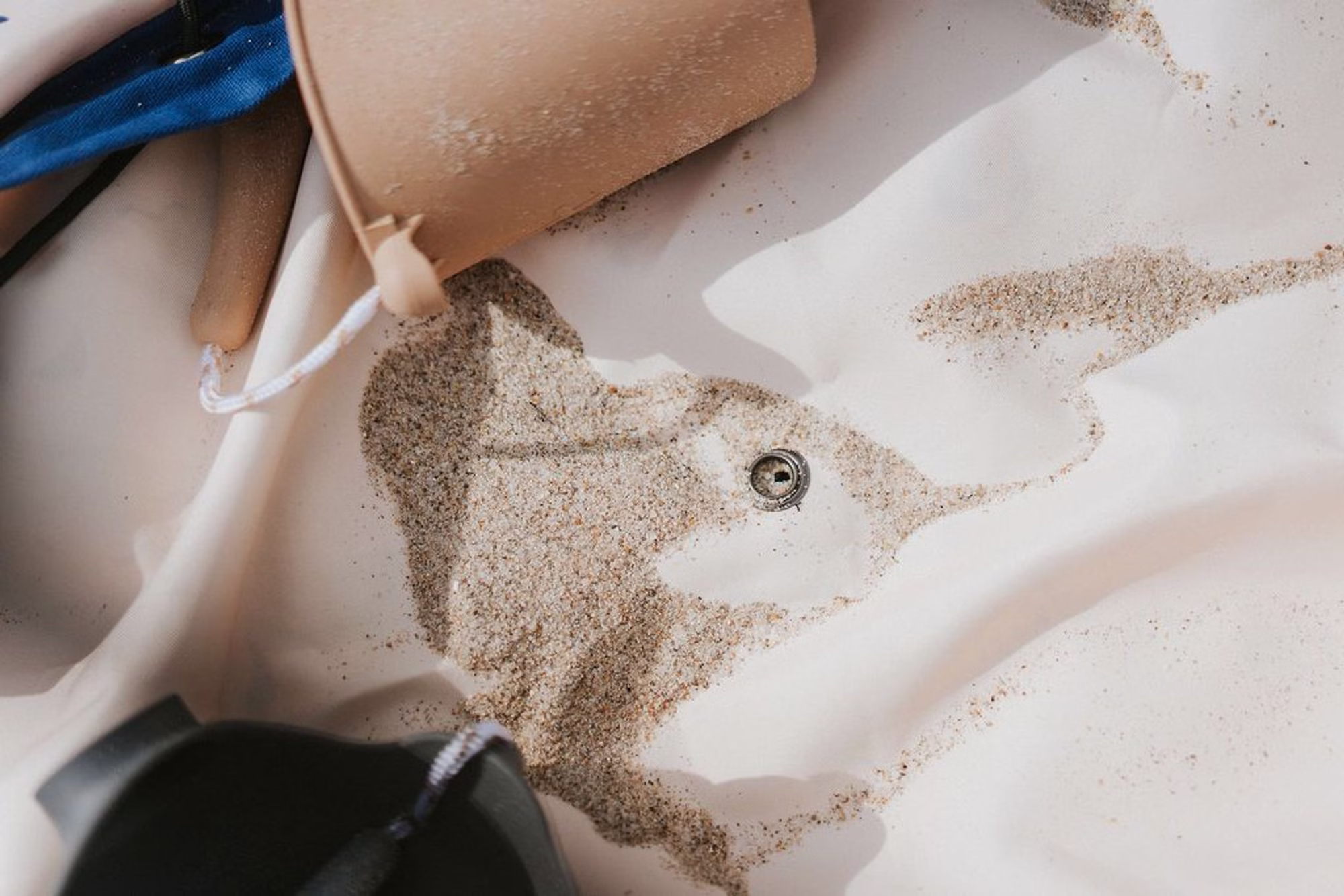 Besonders clever: Ein integriertes Fluchtloch für Sand oder Wasser sorgt dafür, dass unerwünschte Reste einfach ausgeschüttelt werden können – ideal für den Strand oder den Spielplatz.