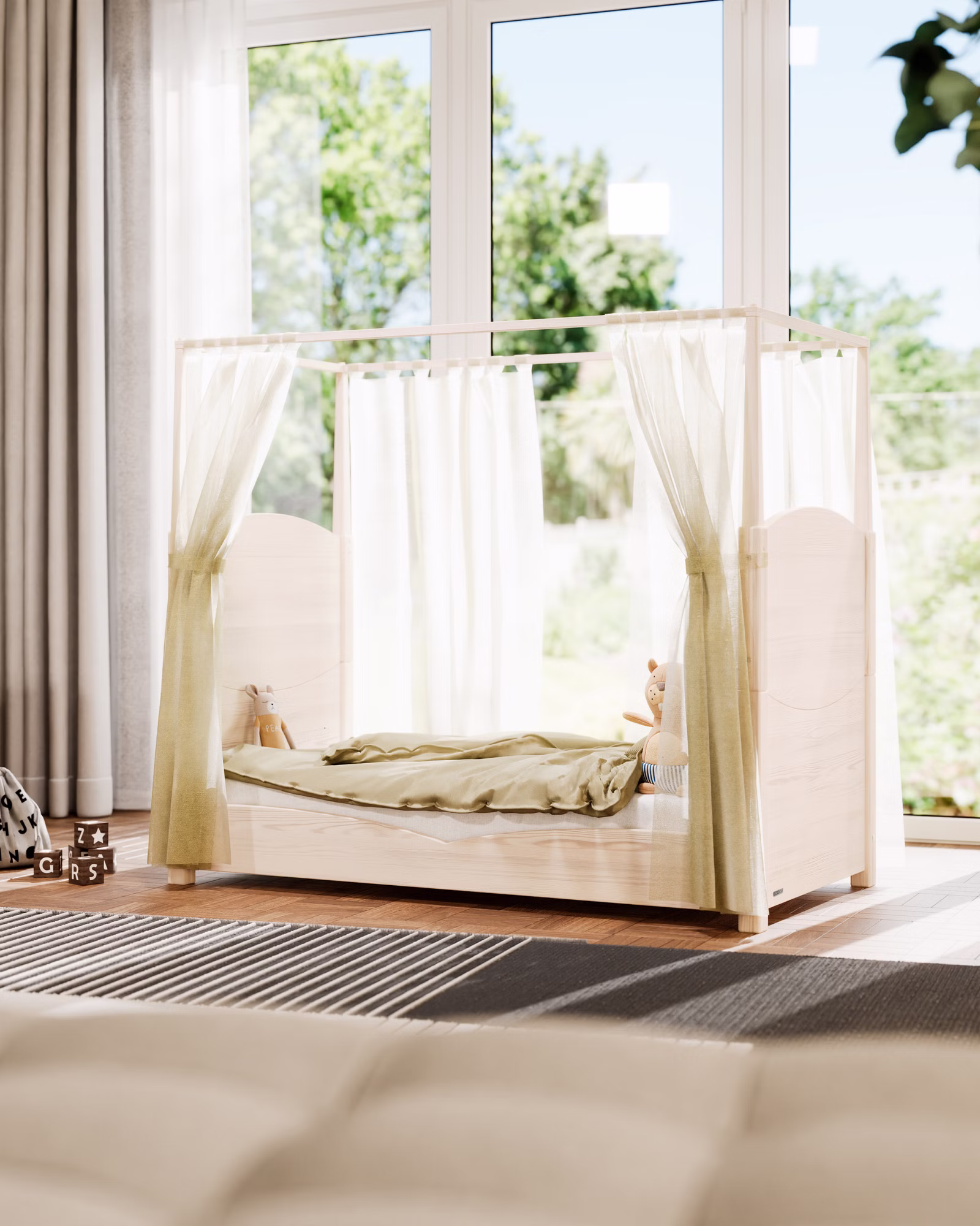 Mit dem Himmelbett-Aufsatz verwandelt sich das Luca Kinderbett in ein traumhaftes Himmelbett.