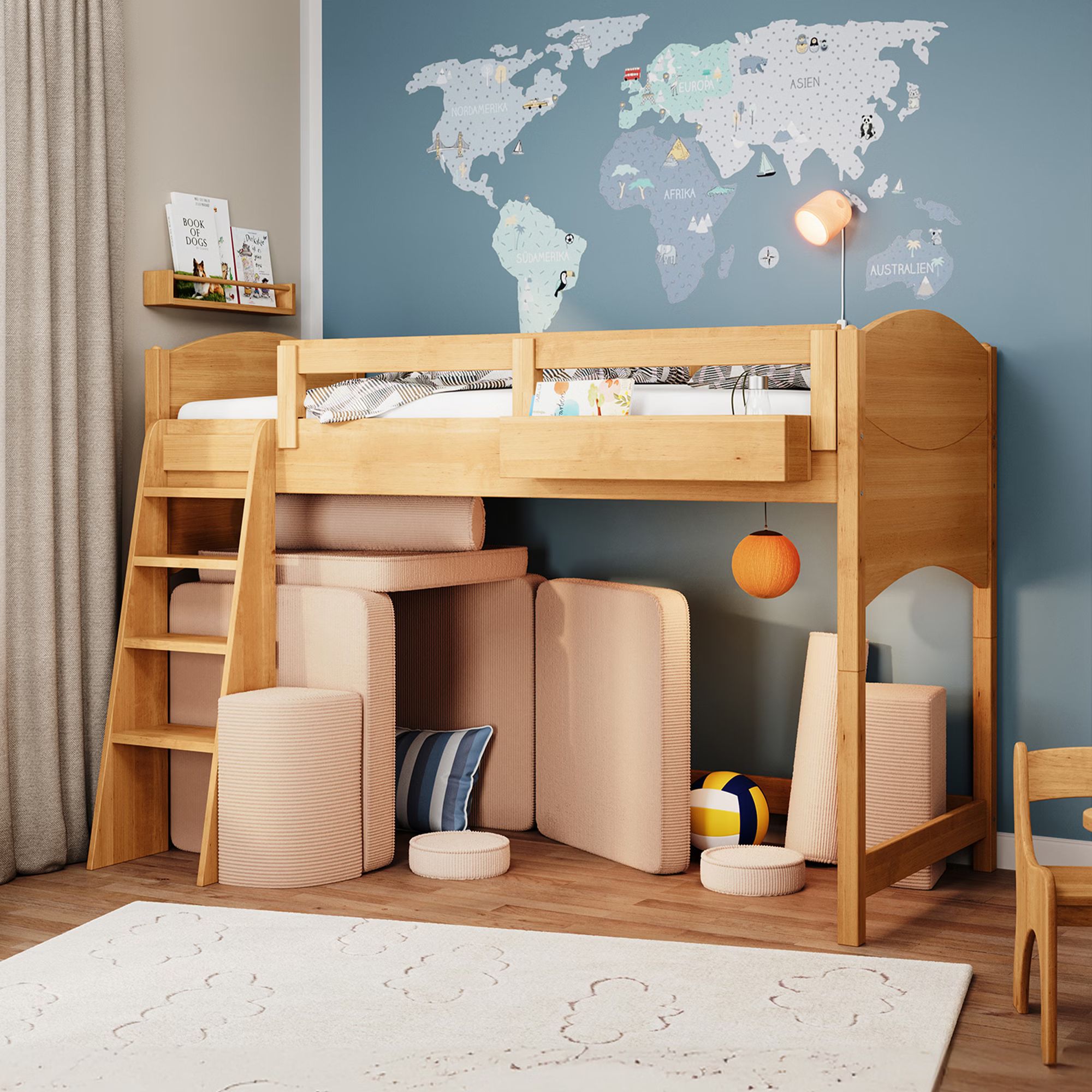 Die Ergänzung für das Bio-Kinder- und Jugendbett Noah: Leiter fürs Noah Kinderbett, passend zum Unterbauelement für ein Hochbett.