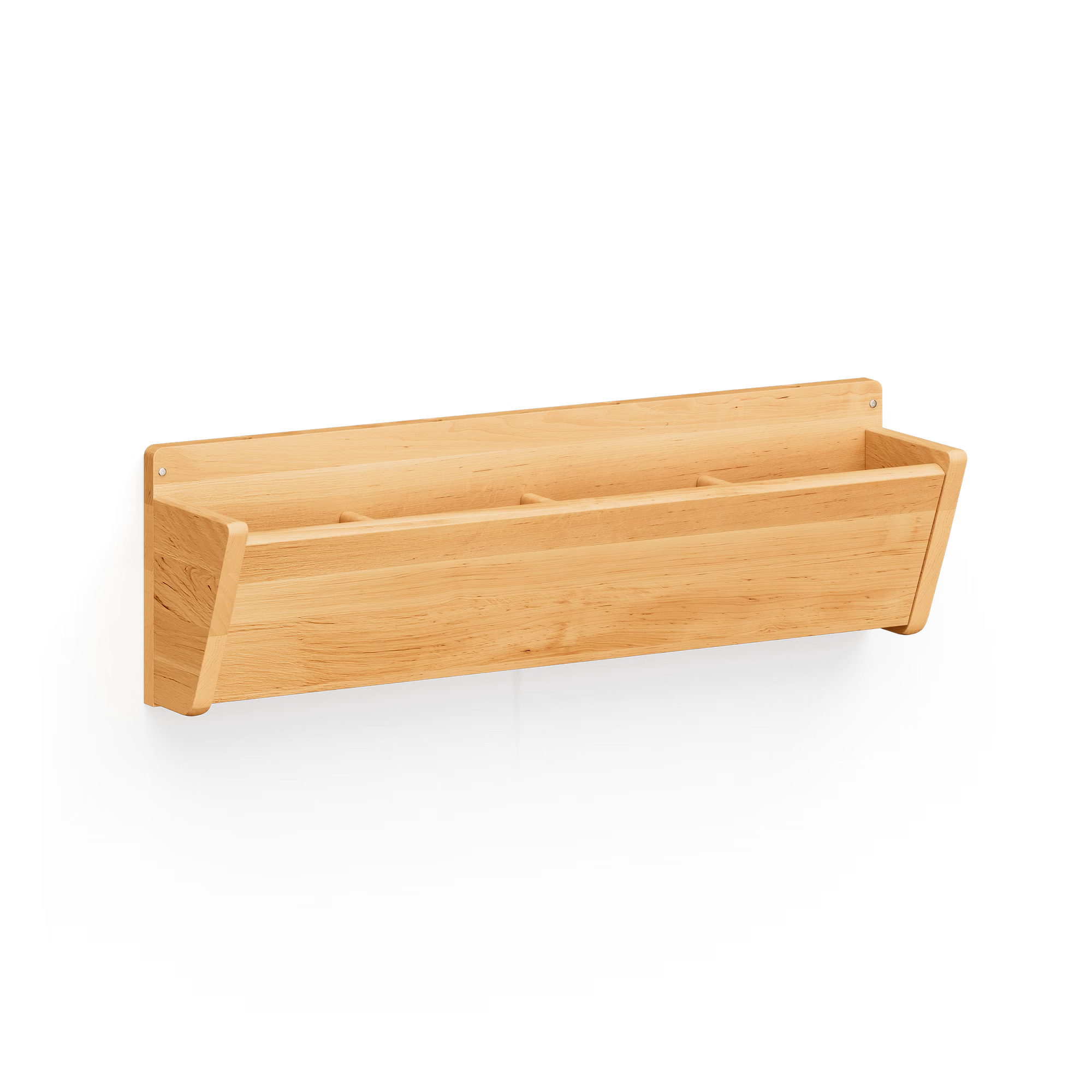 Die Garderobe ist aus massivem Erlenholz und hat Charakter - wir haben die obere Kante mit passgenauen Bohrungen für die Grimm's Motivstecker versehen. Jedes Kind sucht sich ein Symbol aus und erkennt daran jeden Morgen sein Fach wieder. So bekommt die Robin Hänge-Garderobe einen individuellen und persönlichen Charakter.