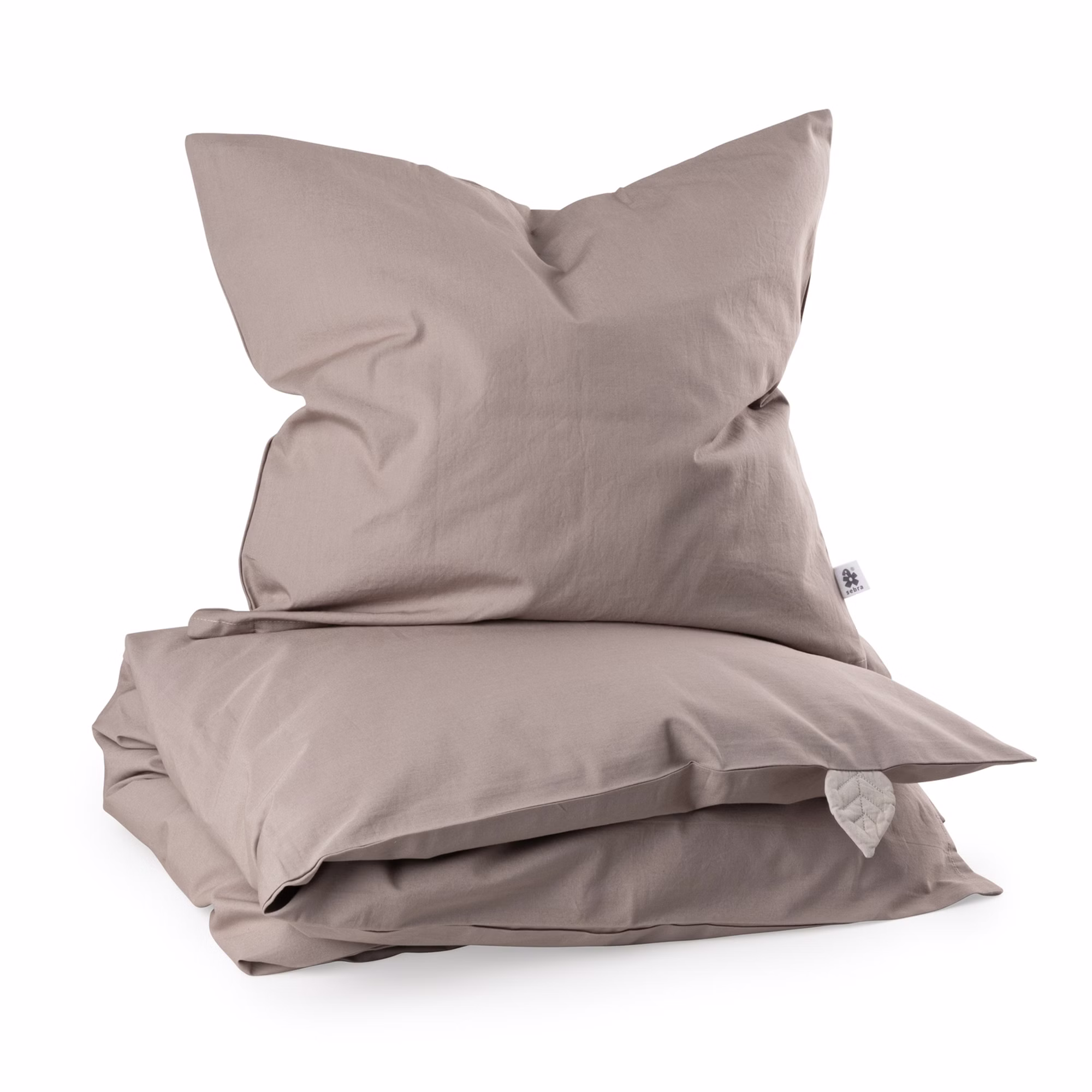 Die Bettwäsche umfasst einen Bettbezug und einen Kopfkissenbezug.