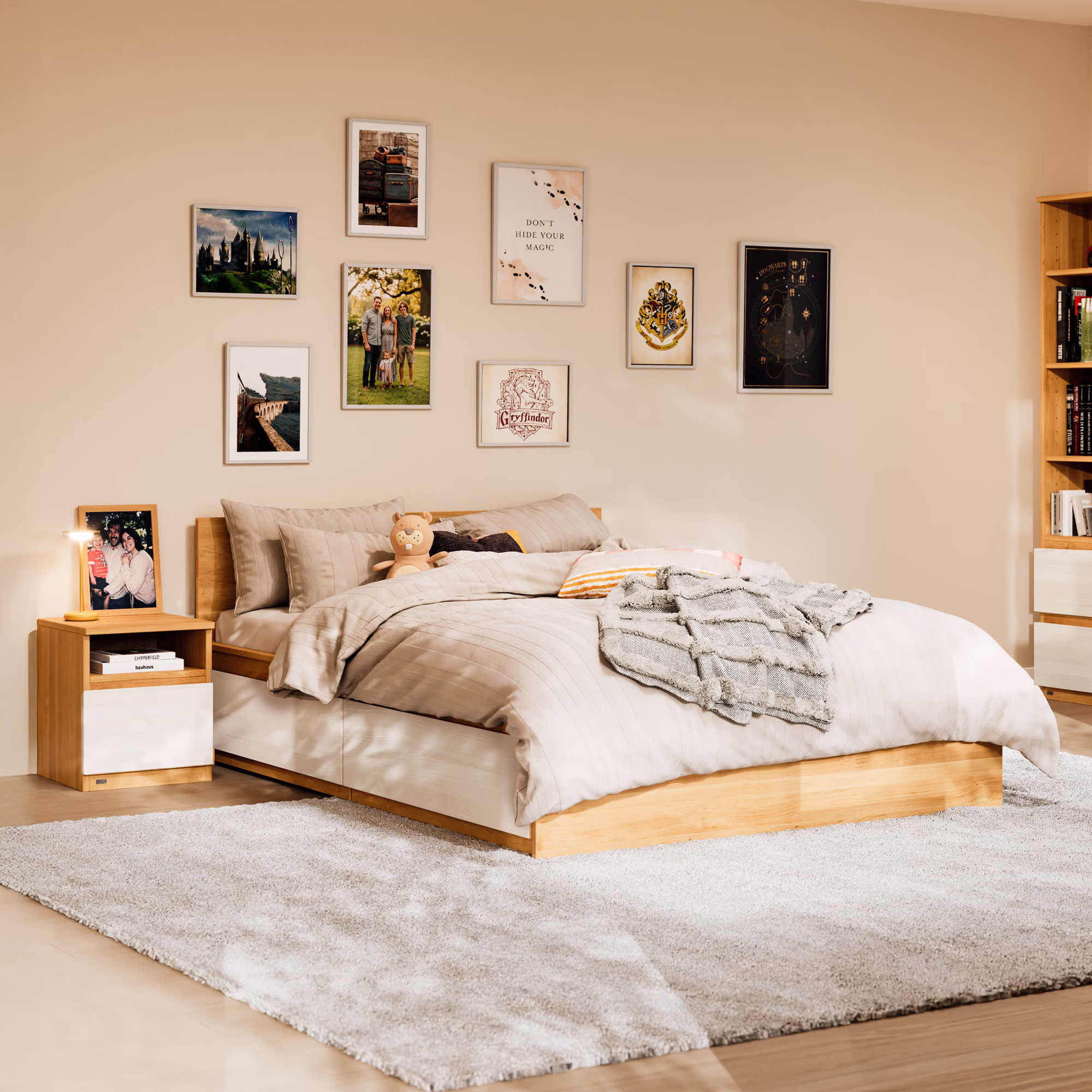 Der Finn Bettkasten kann mit einem Trennbrett (im Zubehör erhältlich) unterteilt werden und sorgt so für noch mehr Ordnung.