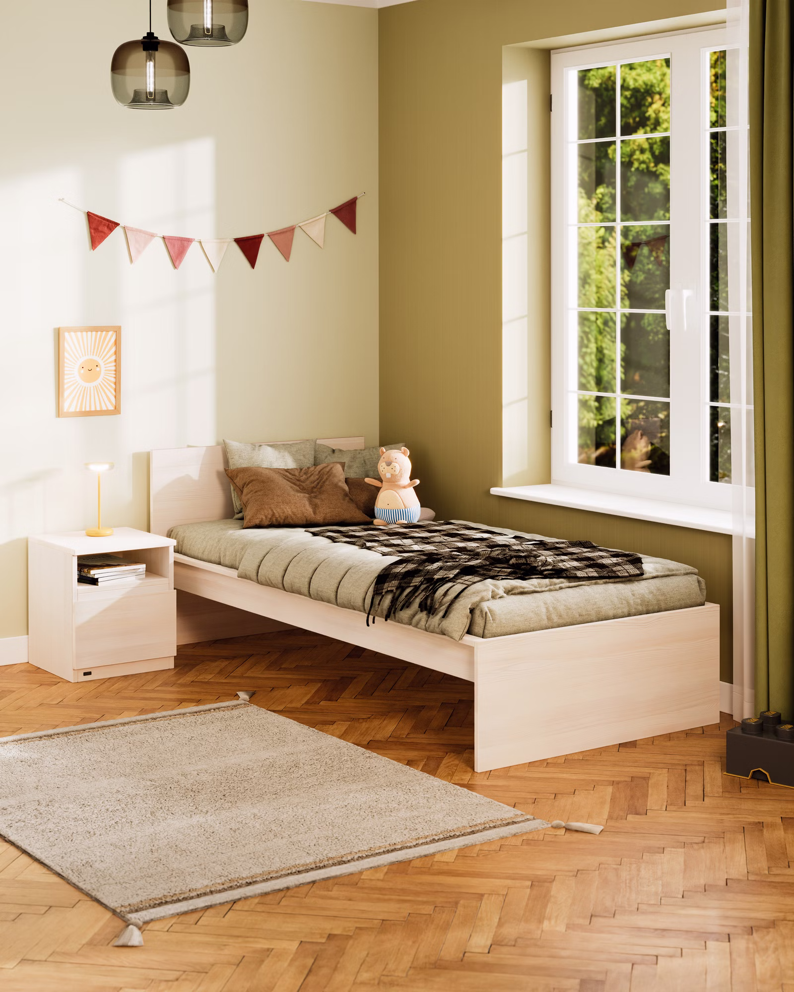 Finn ist bewusst schlicht gestaltet und wirkt dadurch besonders zeitlos. Genau diese Zurückhaltung macht das Bett zu einem langlebigen Begleiter, der sich flexibel an unterschiedliche Lebensphasen und Einrichtungsstile anpasst – vom liebevoll eingerichteten Kinderzimmer bis hin zum modernen Jugendzimmer.
