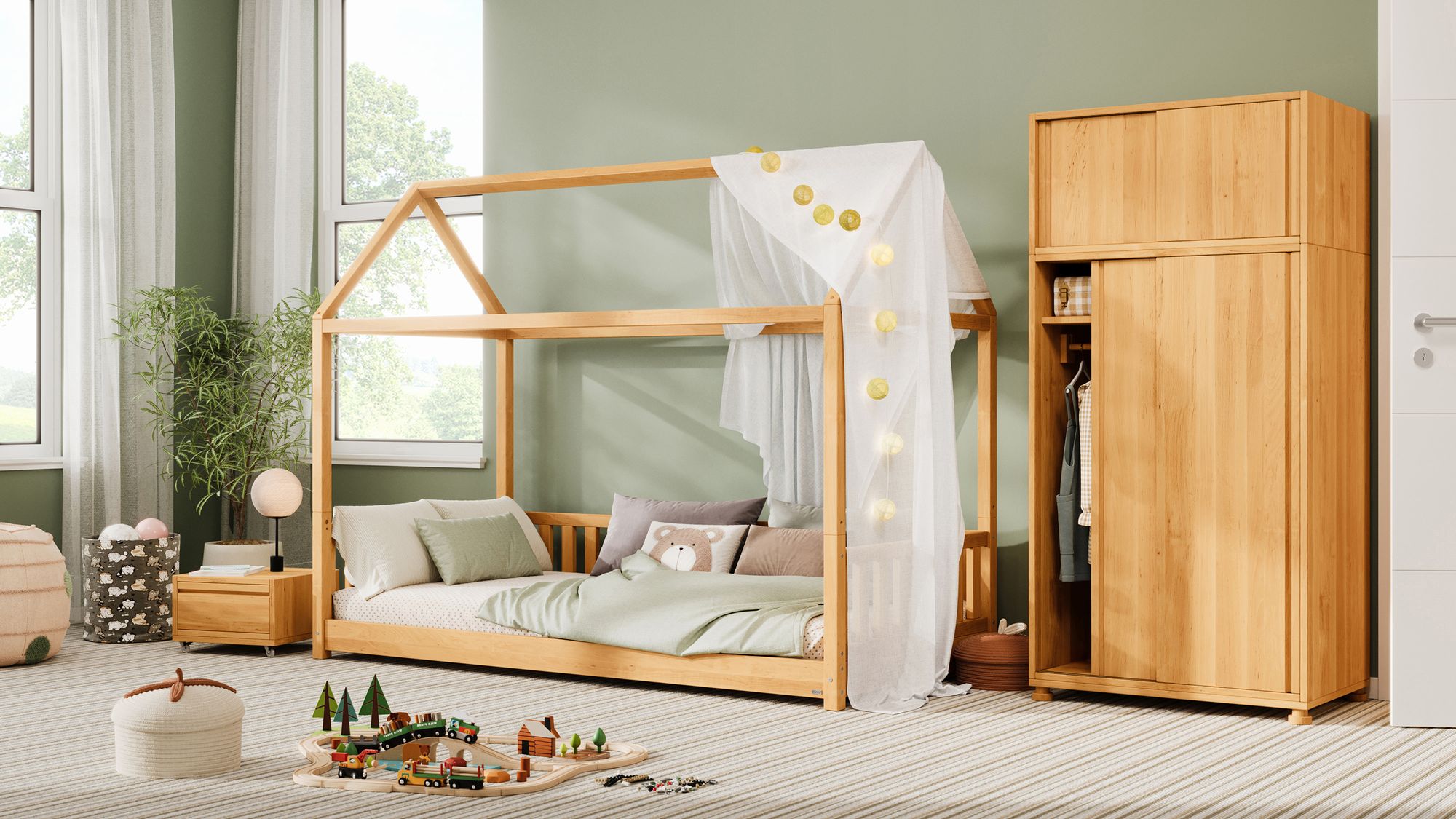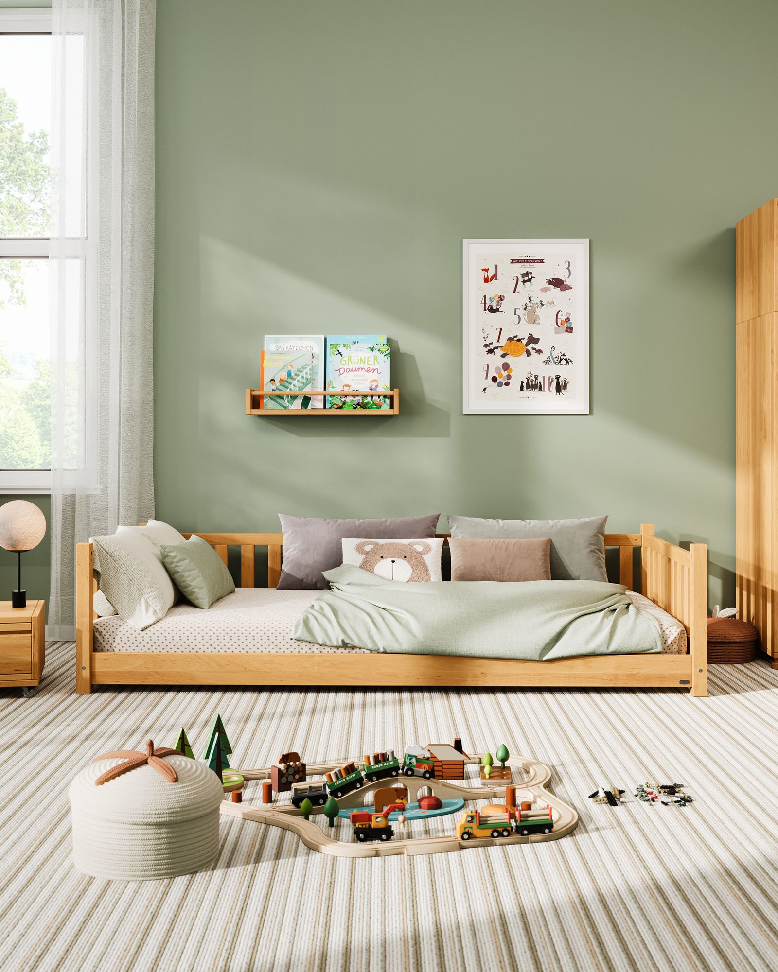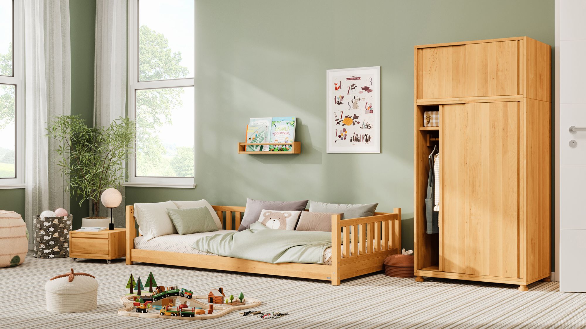 Das Bett kann zusätzlich mit dem Rausfallschutz Frieda kombiniert werden, um noch mehr Sicherheit zu gewährleisten.
