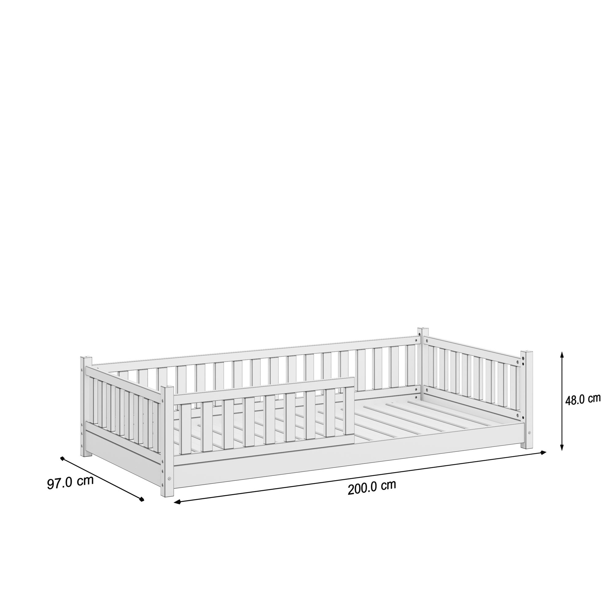 So wird das Bett zu einem stilvollen Hingucker in jedem Kinderzimmer und ermöglicht Ihrem Kind einen Rückzugsort zum Wohlfühlen. Die Bodenfreiheit von nur 3 cm schafft einen minimalen Abstand und sorgt gleichzeitig für Stabilität.